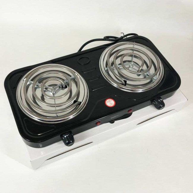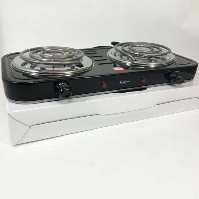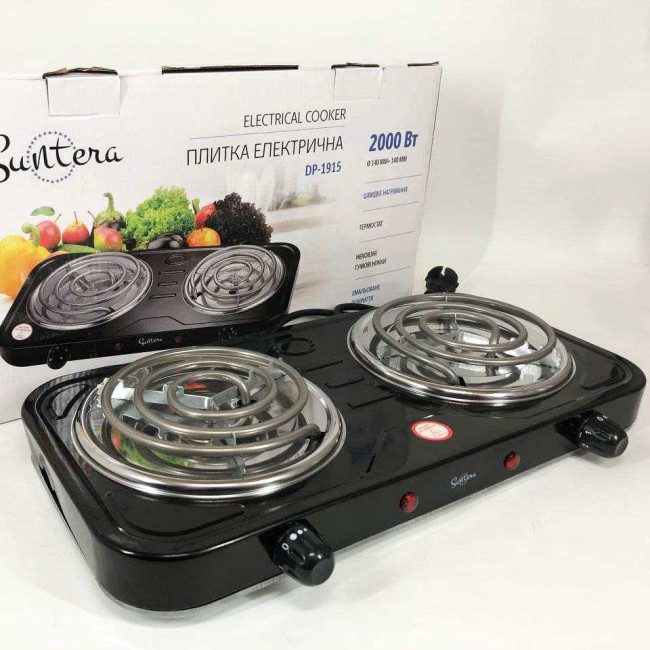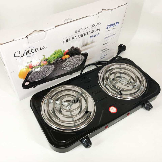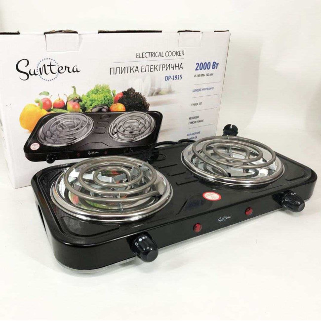 Плита електрична Suntera DP-1915 2 кВт, електроплита 2 конфорки, двокомфорочна плита. Колір: чорний