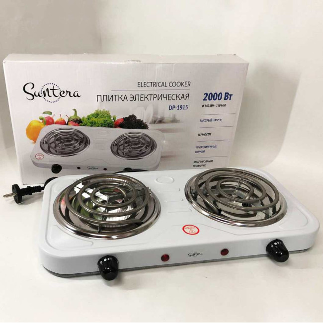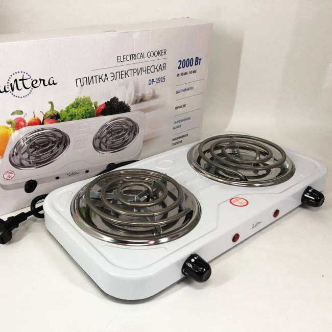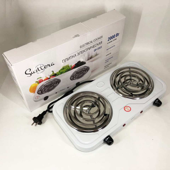 Плита електрична Suntera DP-1915 2000 Вт, потужна настільна електроплита, побутова плита. Колір: білий