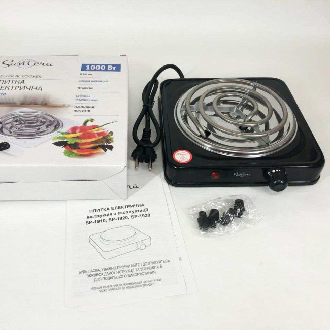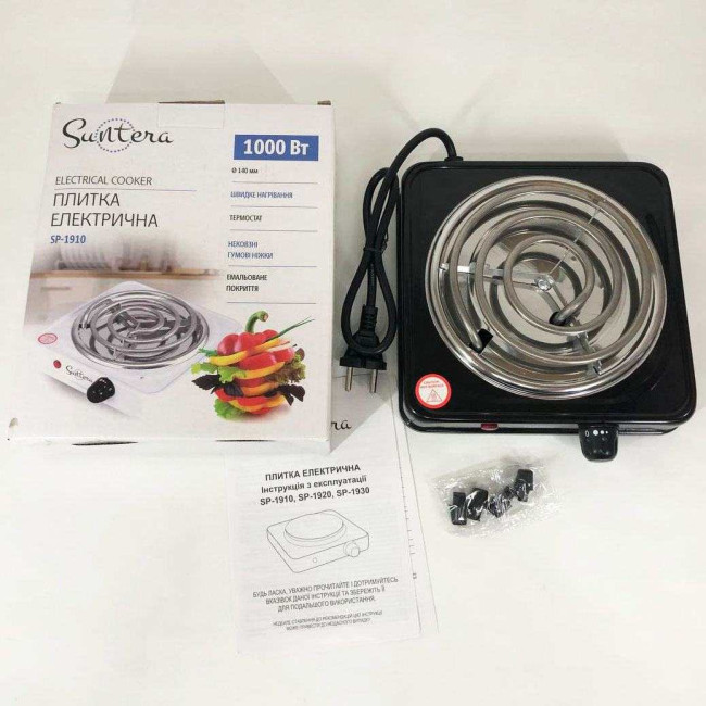 Плита електрична Suntera SP-1910, електроплита 1000 w, електроплита 1 комфорка. Колір: чорний