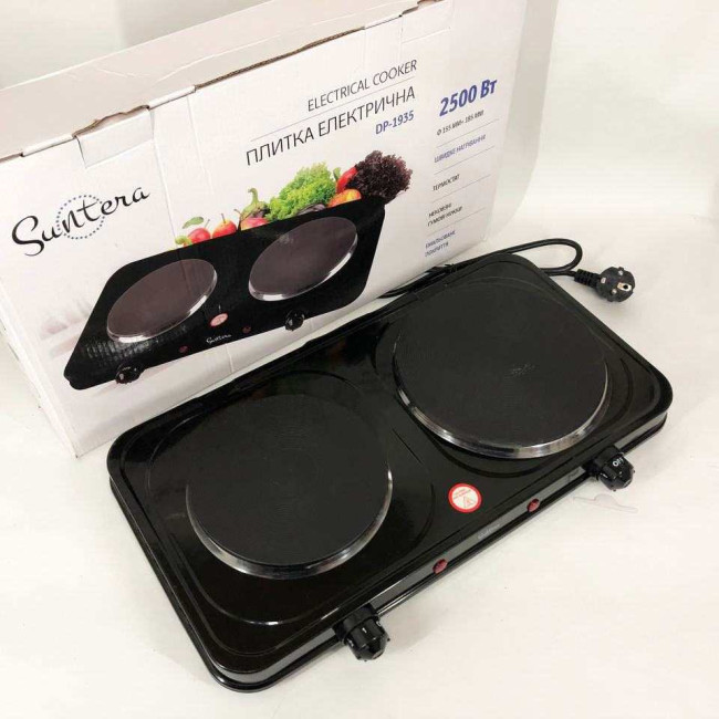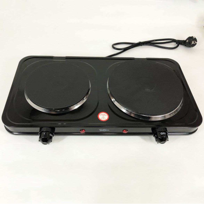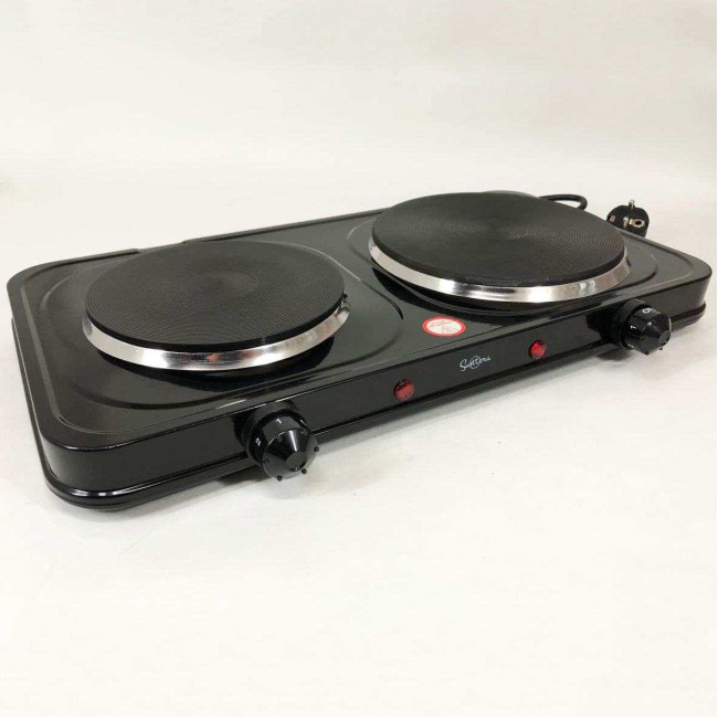 Плитка настільна електрична Suntera DP-1935B, 2500 W, 2 конфорки різного діаметру. Колір: чорний