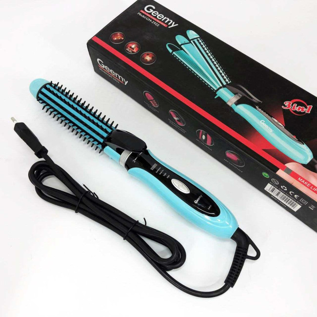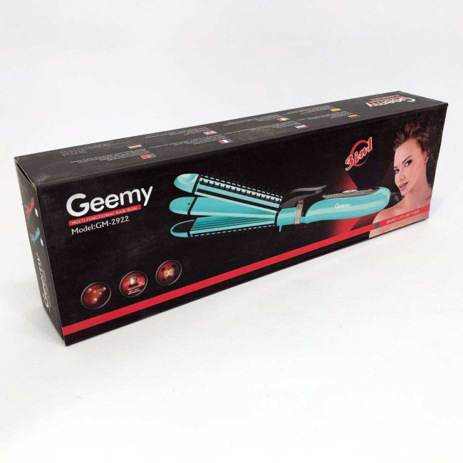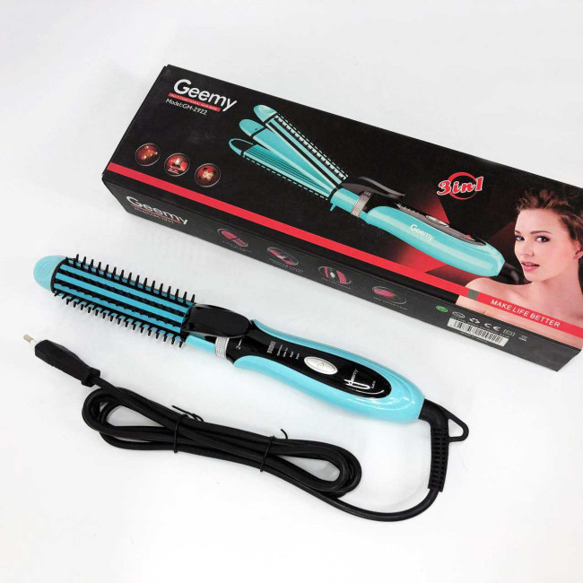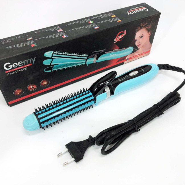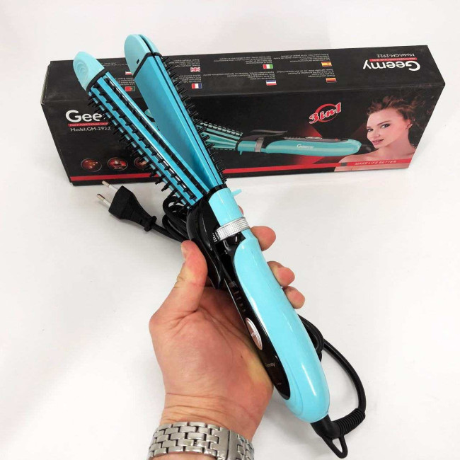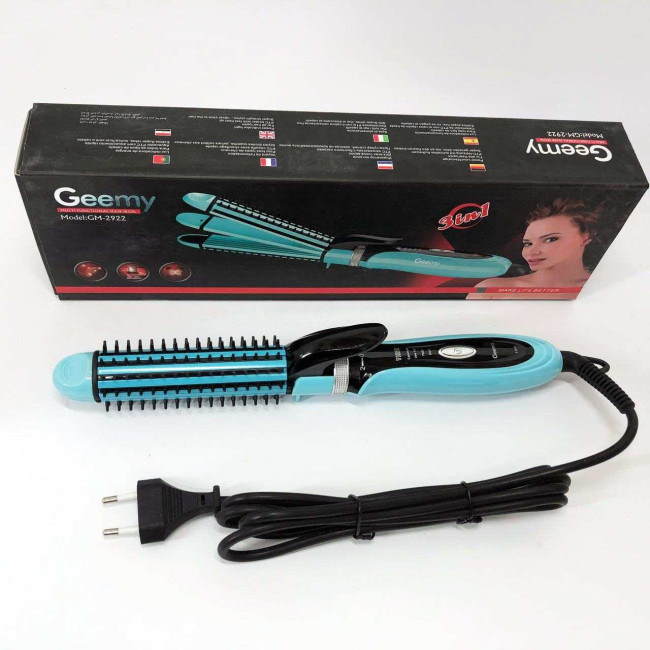 Плойка-праска 3в1 Geemy GM-2922 Плойка для створення об'ємних зачісок, Стайлер для завивки. Колір: блакитний