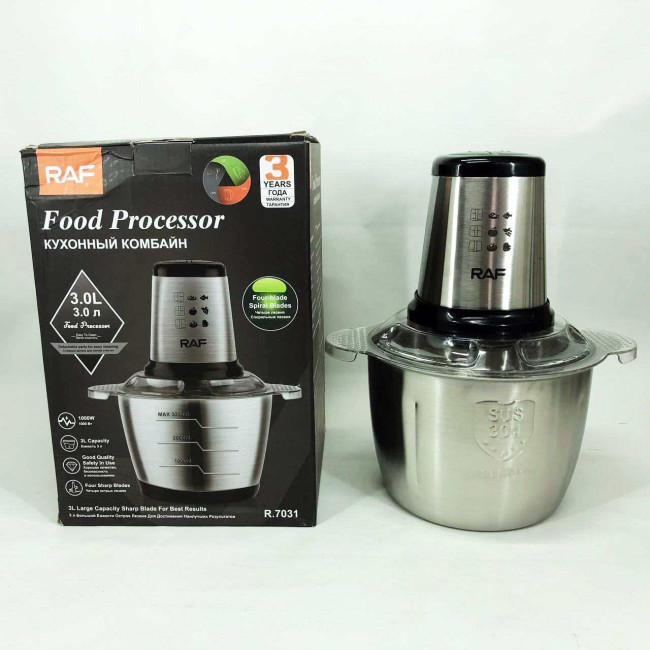 Подрібнювач RAF R.7031 настільний електричний блендер-чоппер 3 л 1000 Вт, Кухонний блендер для овочів