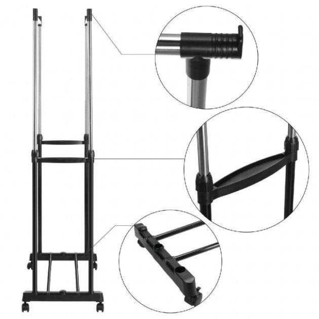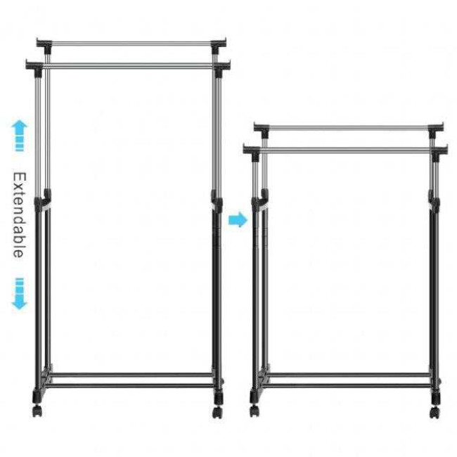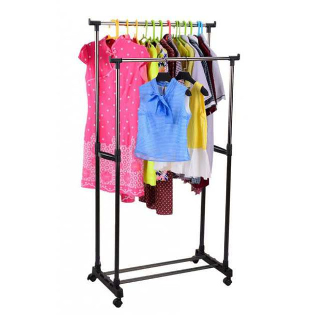 Великим плюсом стійки для одягу Double Pole Clother Hose є наявність невеликих коліщаток, завдяки яким Ви зможете пересунути стійку навіть повністю завішаний одягом.