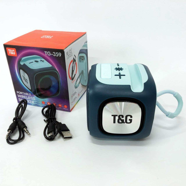 Портативна Bluetooth колонка TG359 7W з підсвічуванням RGB, акумуляторна колонка для музики. Колір: синій