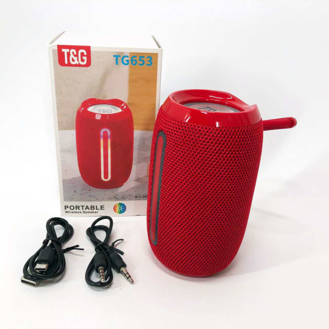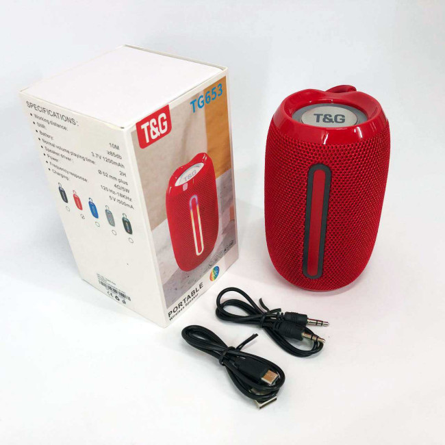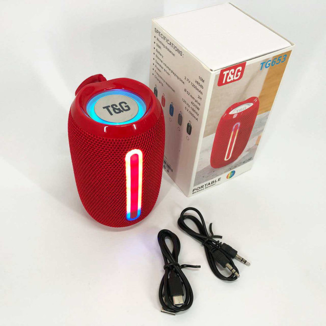 Портативна Bluetooth-колонка TG653 USB з ремінцем, потужна переносна акустична колонка. Колір: червоний