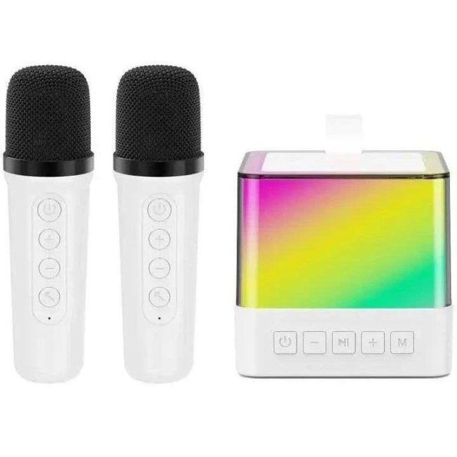 Портативна караоке система з двома мікрофонами Bluetooth акустична колонка для дому та вечірок White