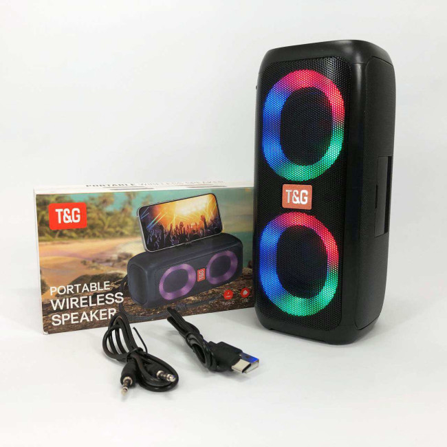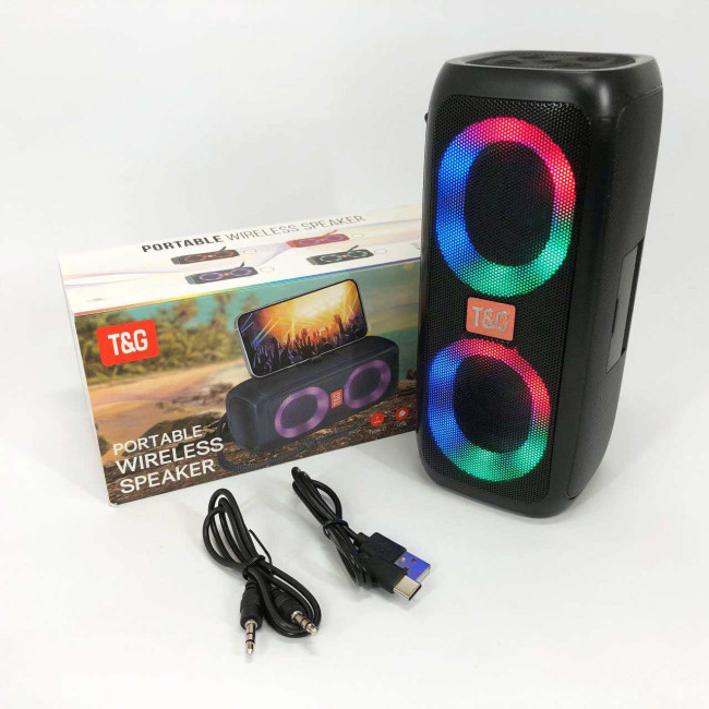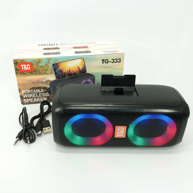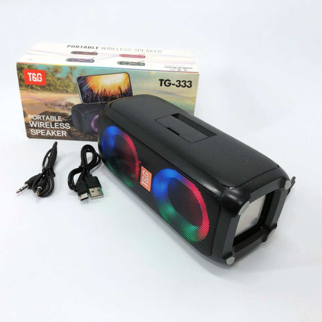 Портативна колонка TG333 2x5W з RGB підсвічуванням, гучна блютуз колонка. Колір: чорний
