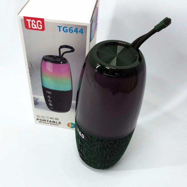 Портативна колонка TG644 5W з RGB підсвічуванням та ремінцем, Бездротова колонка потужна. Колір: зелений