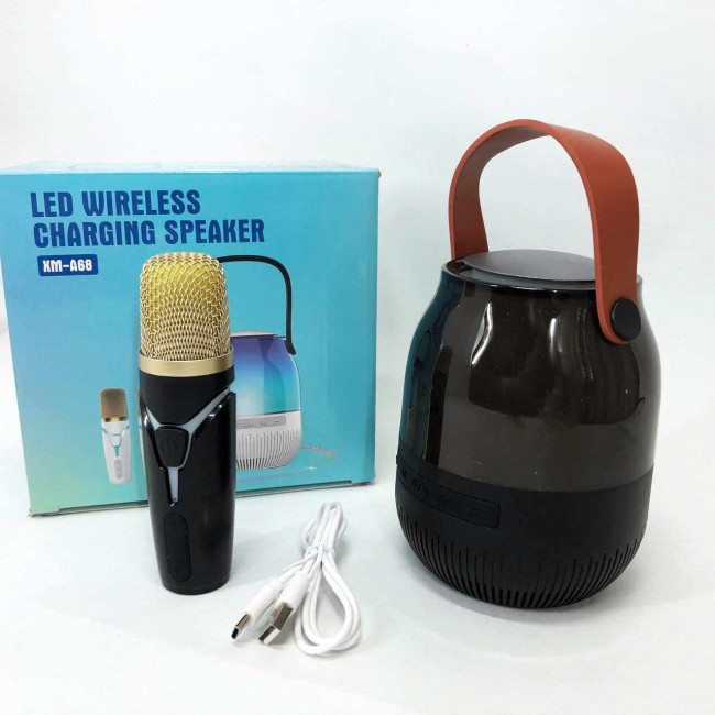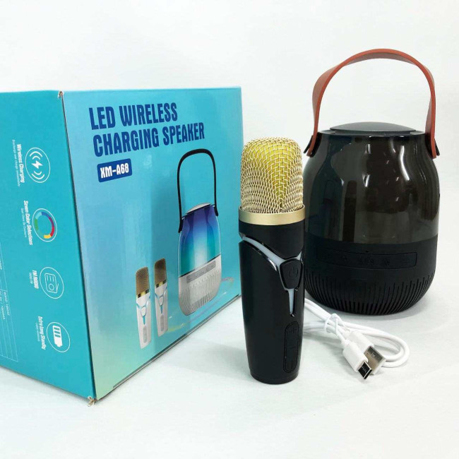 Портативна колонка XM-A68 з RGB підсвічуванням та мікрофоном, Bluetooth мікрофон для караоке