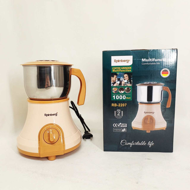 Електрична роторна кавомолка Rainberg RB-2207 здатна за мінімум часу подрібнити каву в зернах лише кількома натисканнями кнопки на корпусі електронного пристрою. Кавомолка підійде тільки для подрібнення кави, а й горіхів, сухих бобів, а також зернових культур. Незважаючи на свою мініатюрність, ця кавомолка має місткий контейнер для подрібнення, а завдяки компактним розмірам займає зовсім небагато місця. Корпус виконаний з якісного пластику.