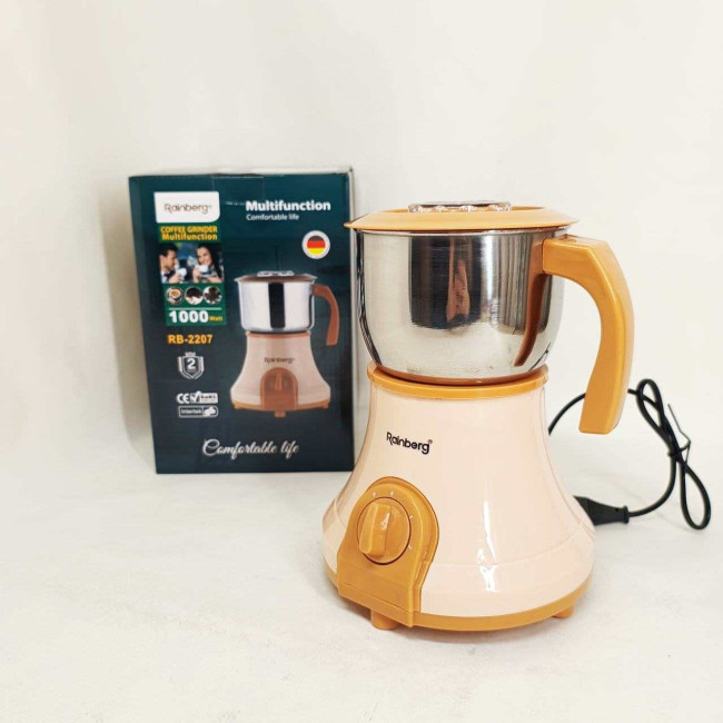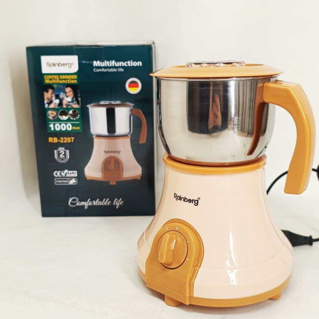 Потужна електрична кавомолка подрібнювач Rainberg RB-2207 1000 Вт, кавомолка ручна портативна