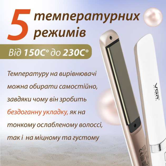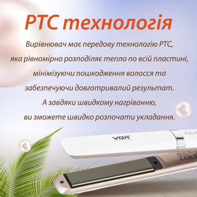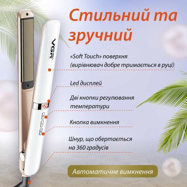 Праска для випрямлення волосся з дисплеєм VGR V-522 потужністю 45 Вт, Праска для вирівнювання