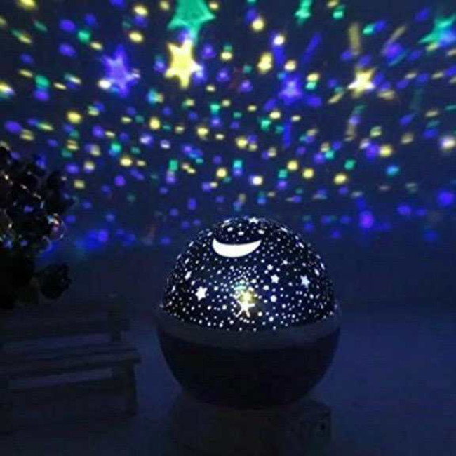 - Чотири світлодіодні лампи забезпечують яскраву та чітку проекцію зірок і місяця на стіни та стелю