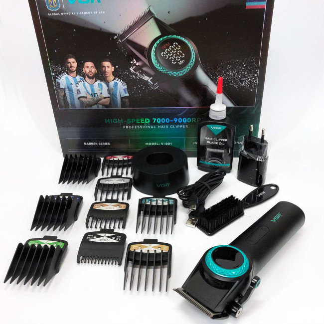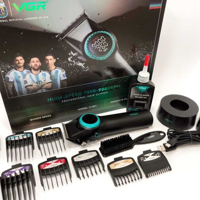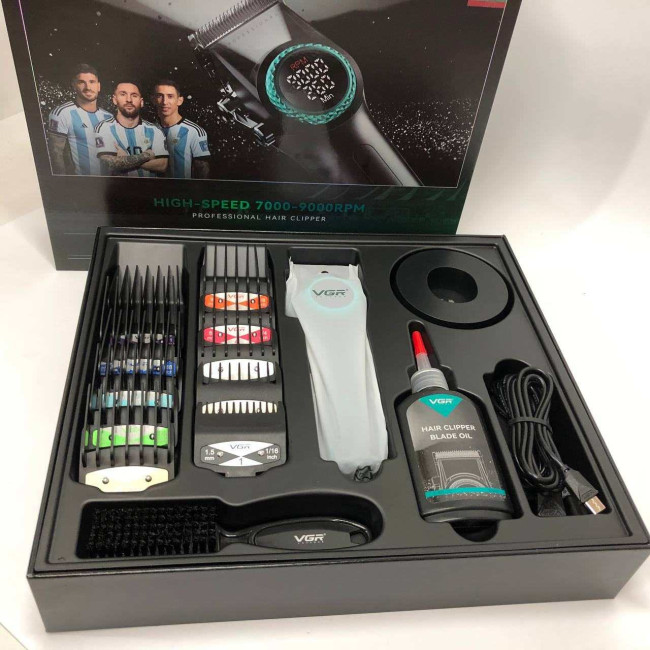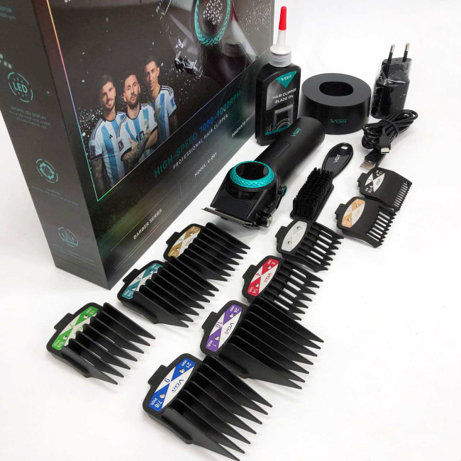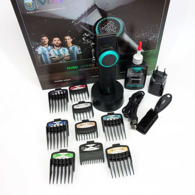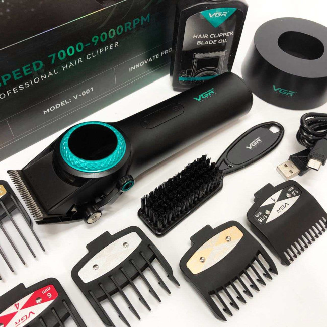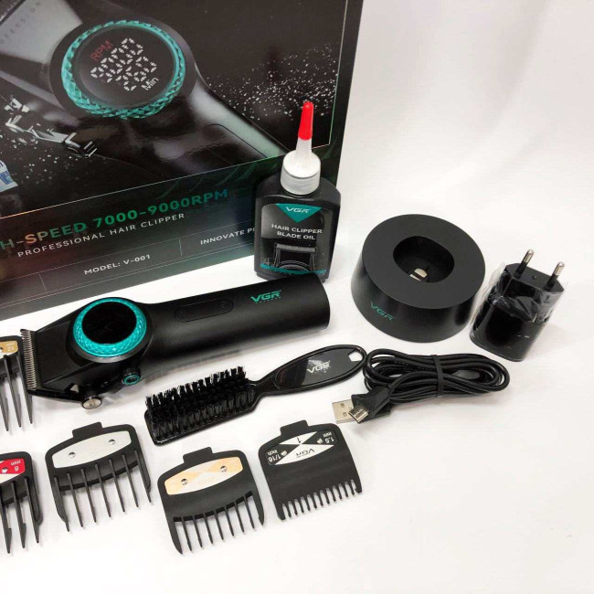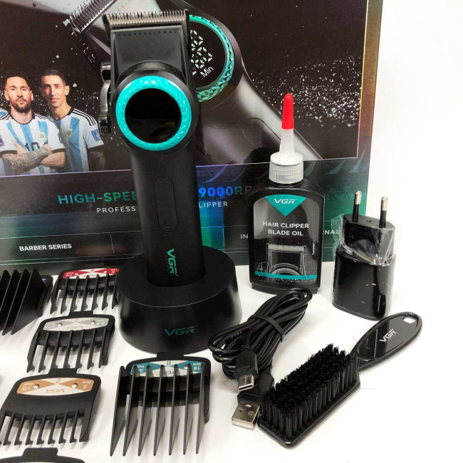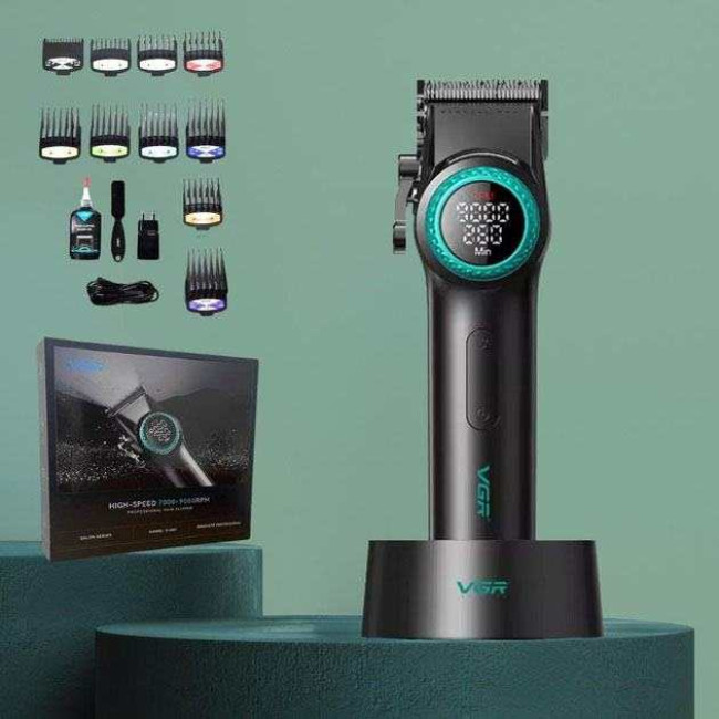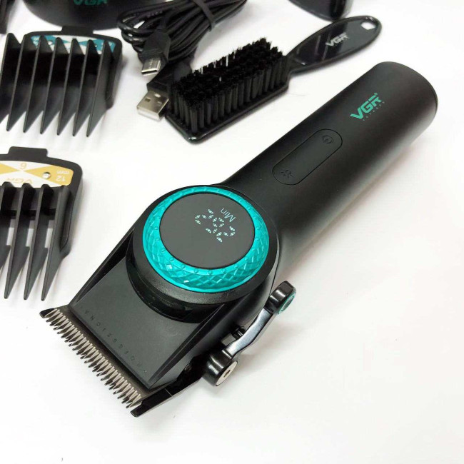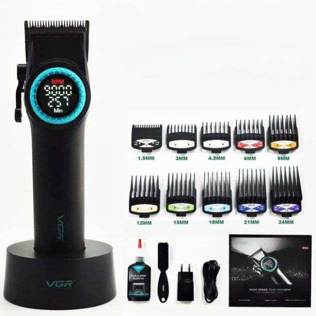 Професійна машинка для стрижки волосся VGR V-001 з дисплеєм 9000 об/хв та 10 насадками (1,5-24 мм)