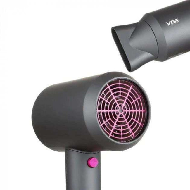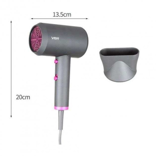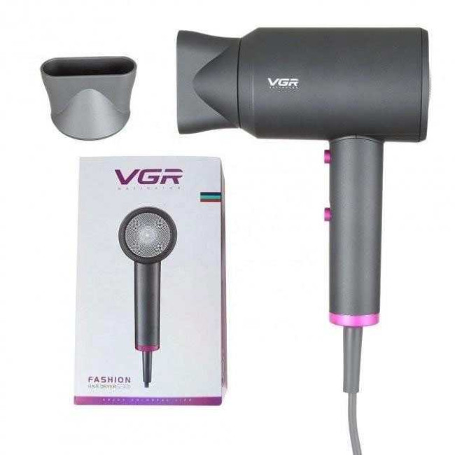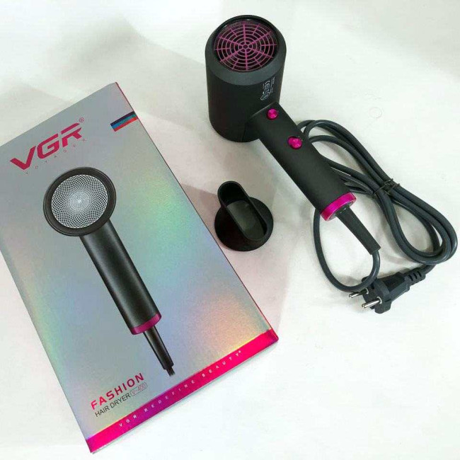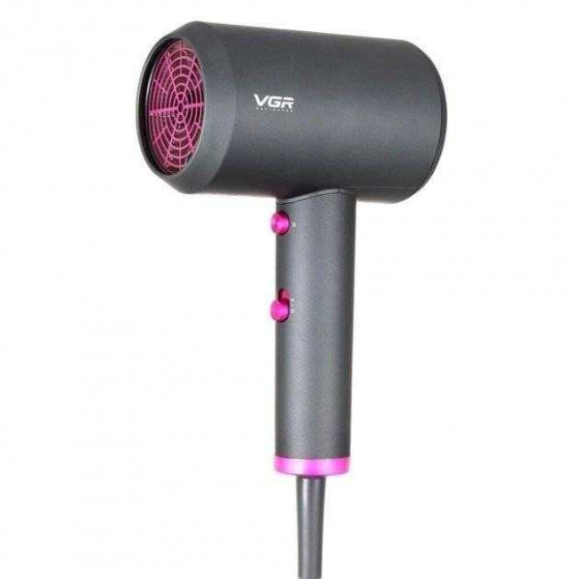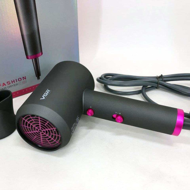 Фен VGR — це ідеальний фен, що зробить Ваше волосся ще більш шовковистим, доглянутим і красивим. Дана модель має високу потужність, тому укладання з його допомогою повинна бути швидкою і легкою. Корпус фена виготовлений з якісного термостійкого пластику. При цьому є можливість регулювання трьох температурних режимів і двох швидкостей повітряного потоку, що дозволяє підбирати необхідні режими роботи під кожне укладання і тип волосся. Фен таким чином піклується про них і не дає пересушити.