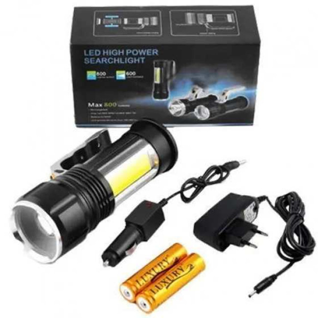 - Комплектація: Ліхтар, адаптер 220V, автомобільний адаптер, акумулятори 18650 – 2шт коробка