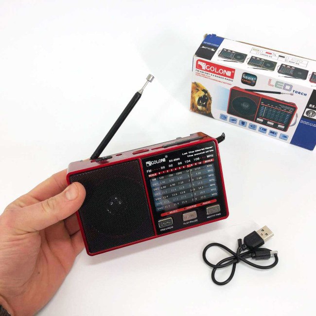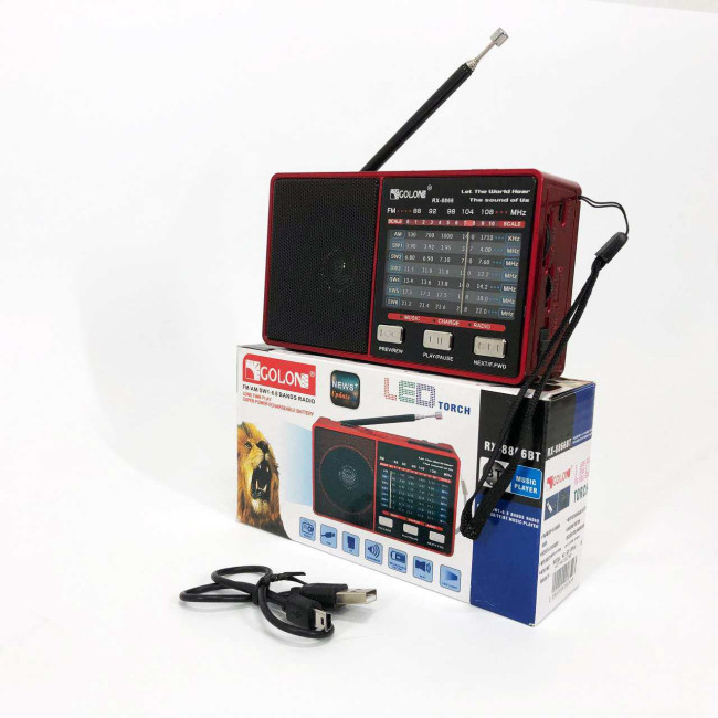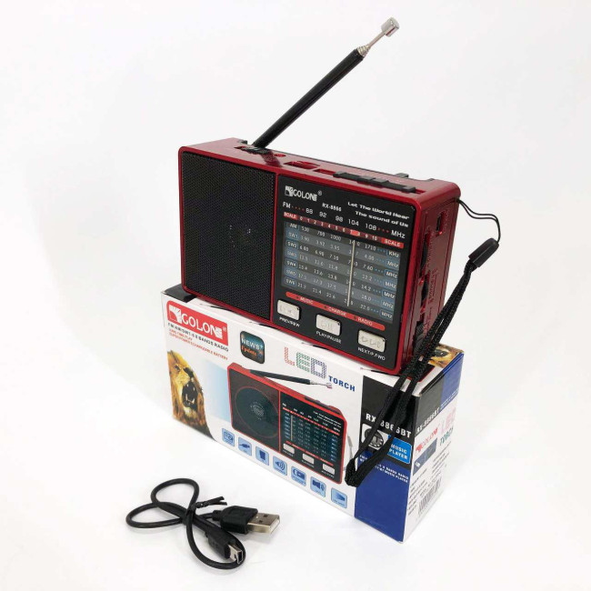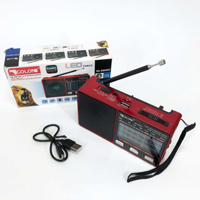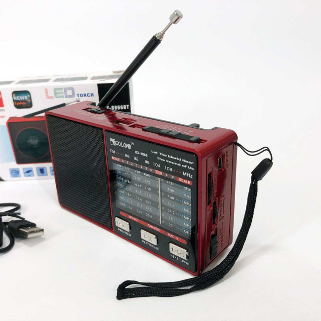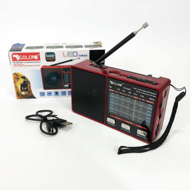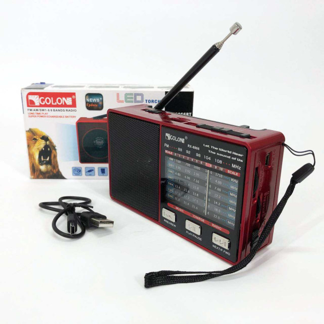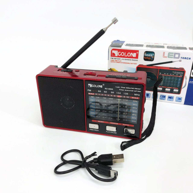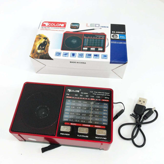 Портативний динамік / радіо / колонка Golon RX8866BT (8868) – дозволить слухати улюблену музику з будь-якого носія: c USB флешки, карти пам’яті SD чи станції FM радіо. Ця модель приймача має чудову якість прийому, навіть у віддалених місцях. Широкий крок між радіостанціями легко налаштуватися на ту чи іншу частоту