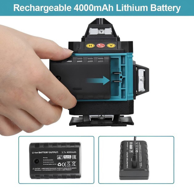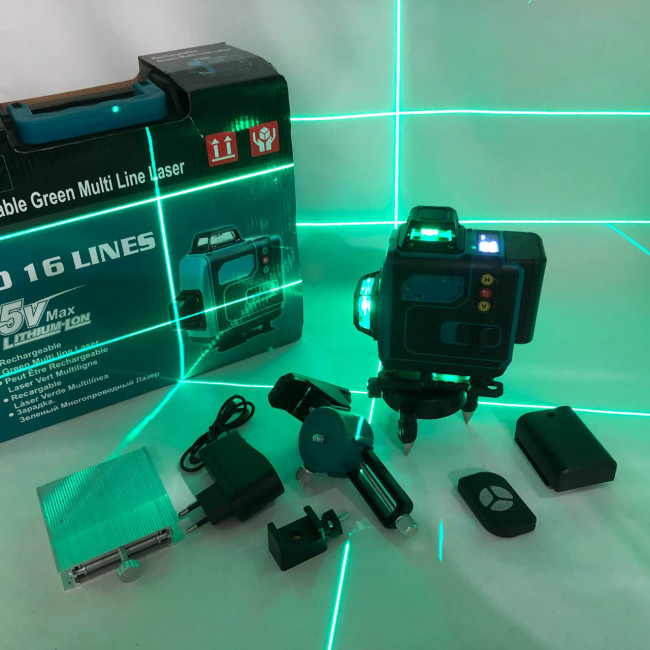 Рівень лазерний лінійний нівелір акумуляторний Laser 4D, 16 ліній, робоча відстань 30м, у валізі
