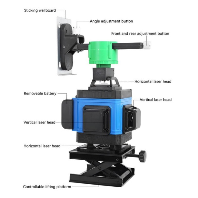 Основна перевага лазерного рівня нівеліру 4D–його здатність створювати 16 лазерних ліній на 360°. Це дозволяє вам швидко та точно визначити горизонтальні та вертикальні лінії, а також кути на різних поверхнях. Ви можете використовувати його для встановлення полиць, навісних стель, вирівнювання стін, укладання плитки та багатьох інших завдань.
