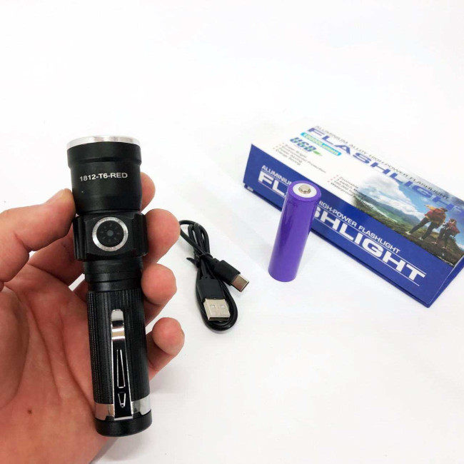Ручний ліхтар PLD-1812-T6 (red) 1x18650, Водонепроникний ліхтар, Потужний акумуляторний лед ліхтарик