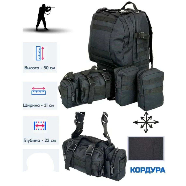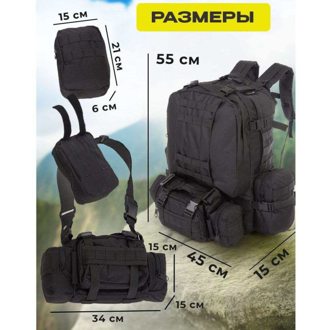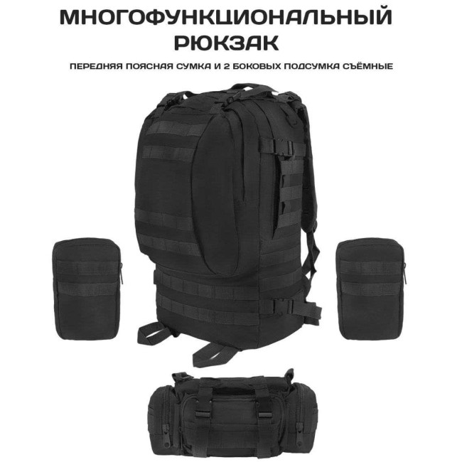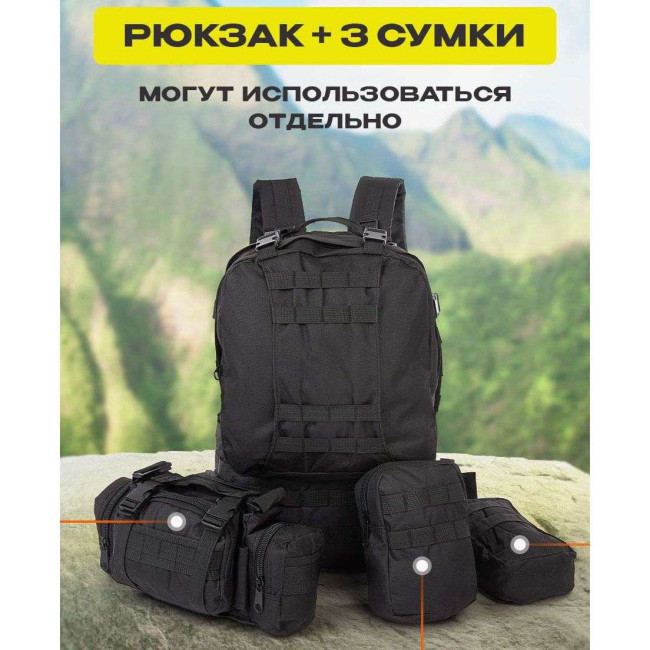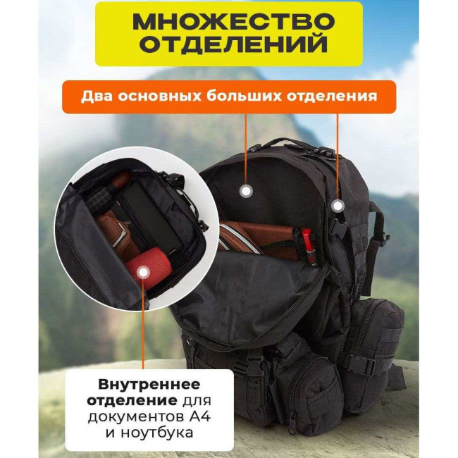 Рюкзак тактичний 50 літрів (+3 підсумками) Якісний штурмовий для походу та подорожей наплічник баул