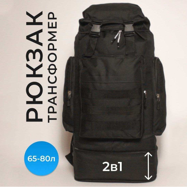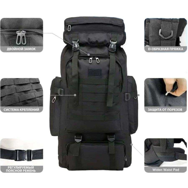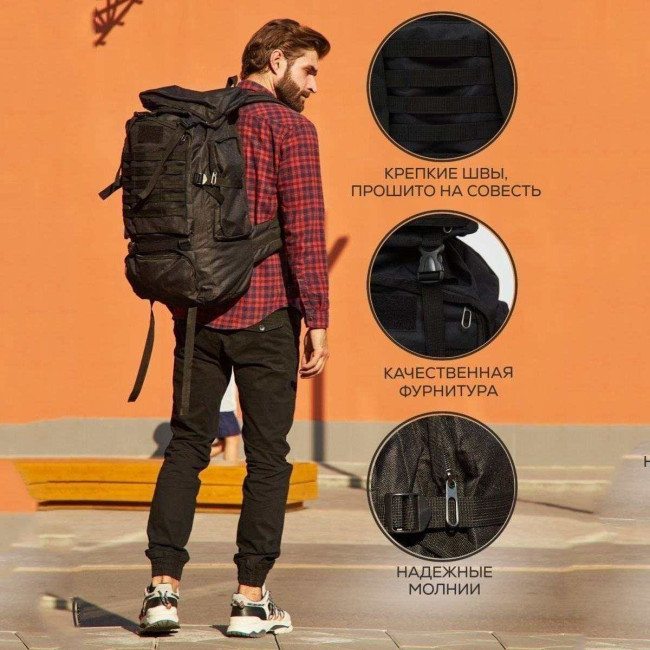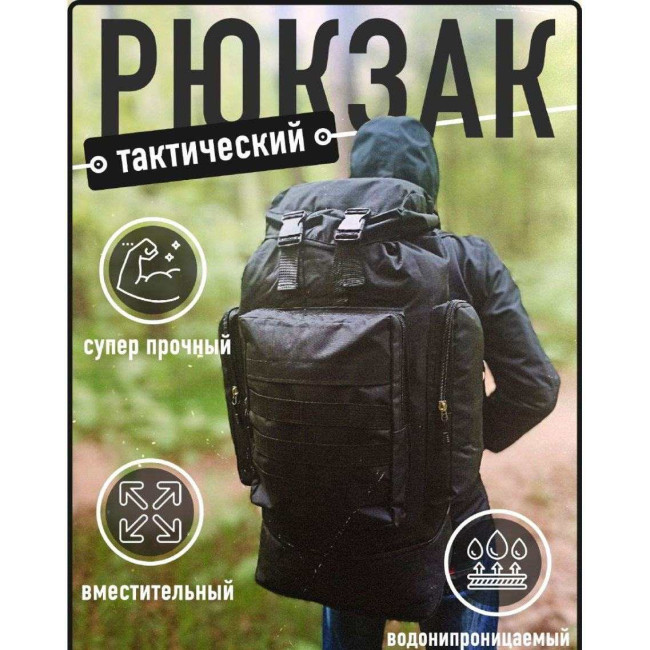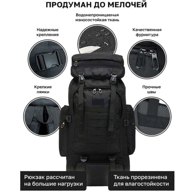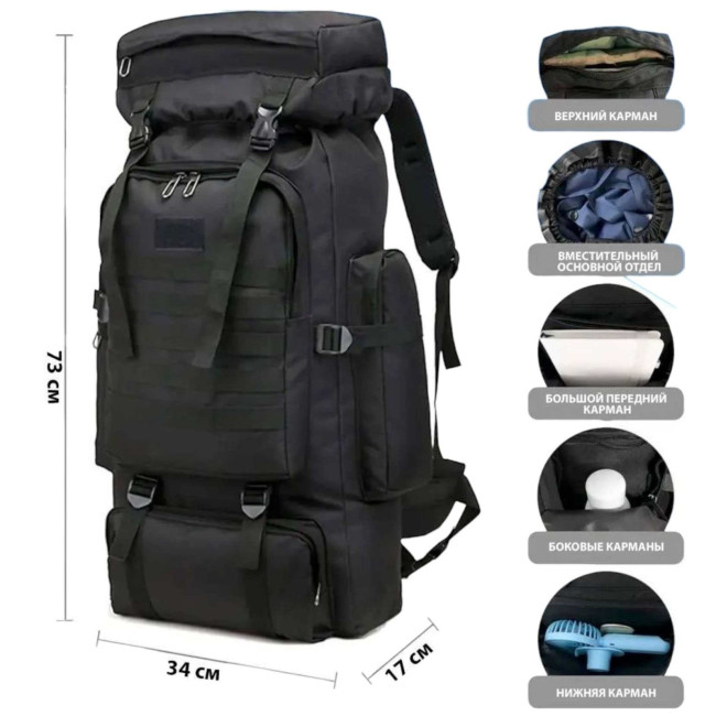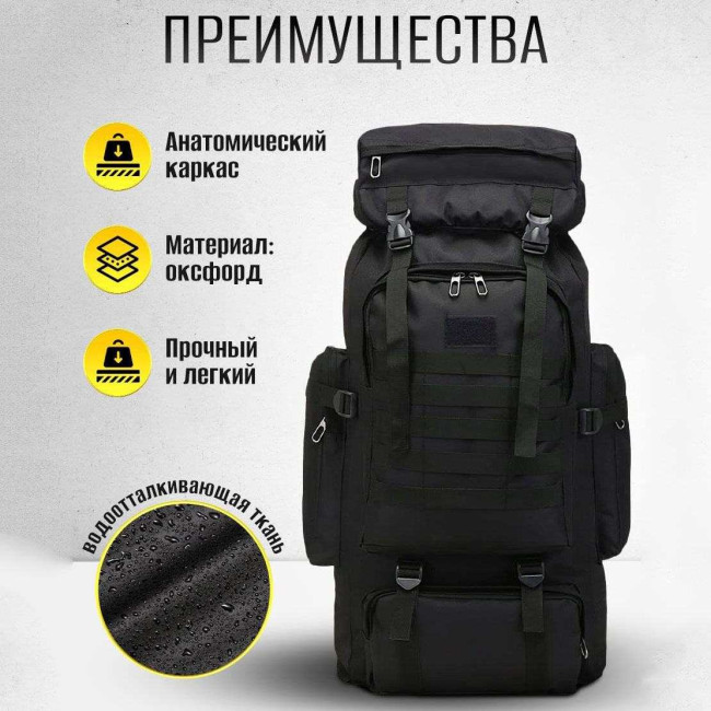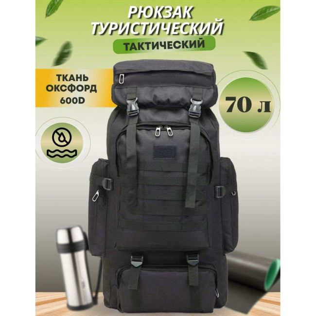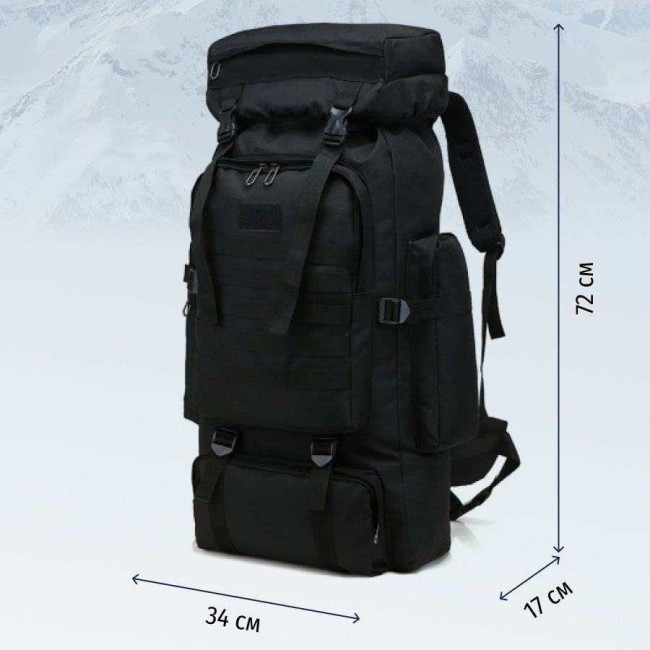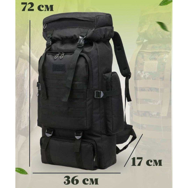 Рюкзак тактичний чорний 4в1 70 л Водонепроникний туристичний рюкзак. Колір: чорний