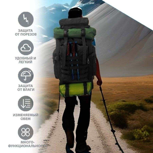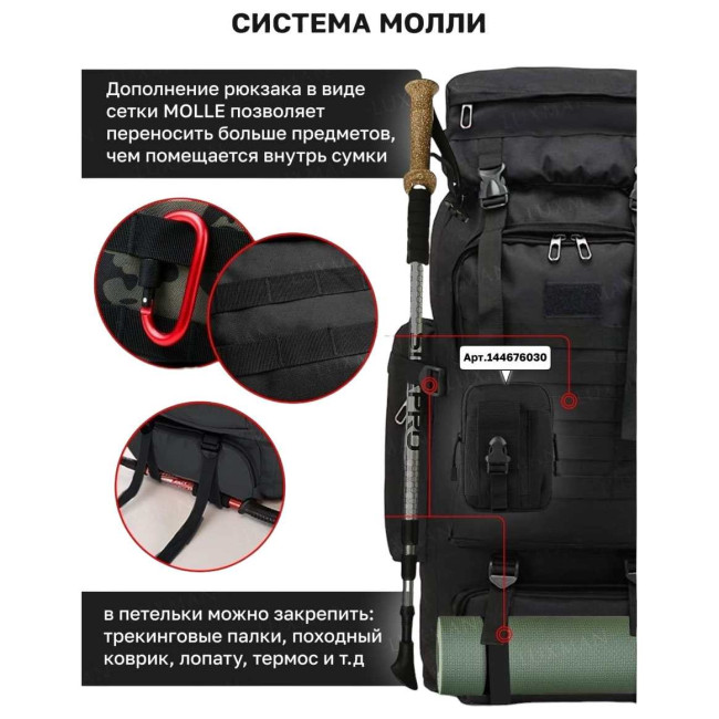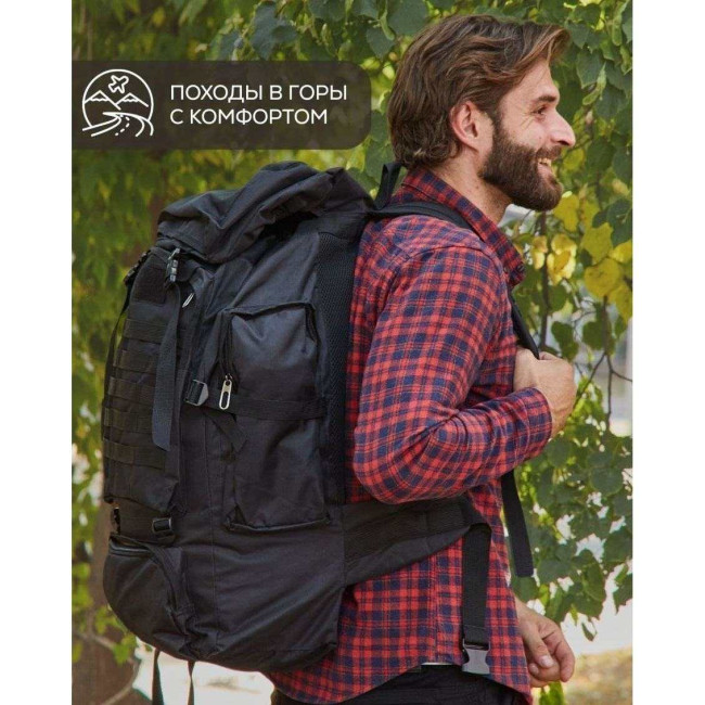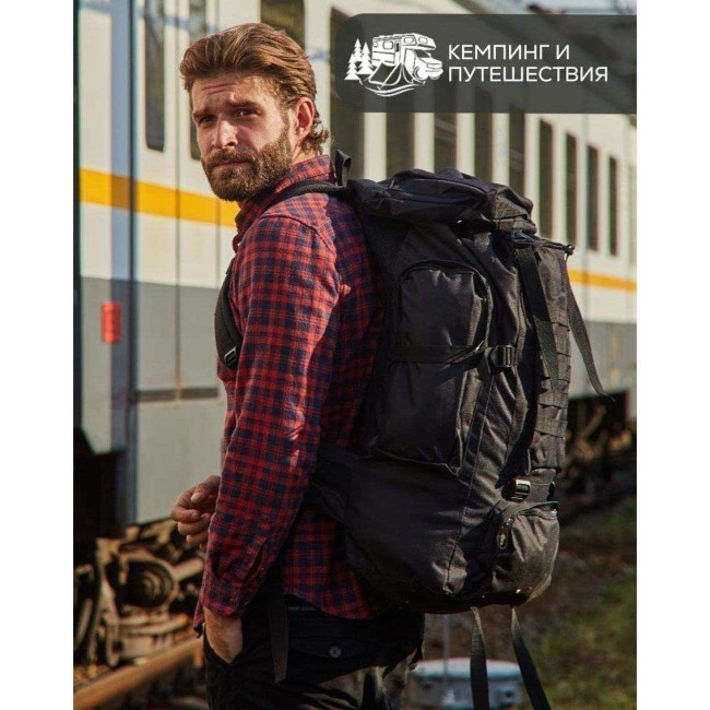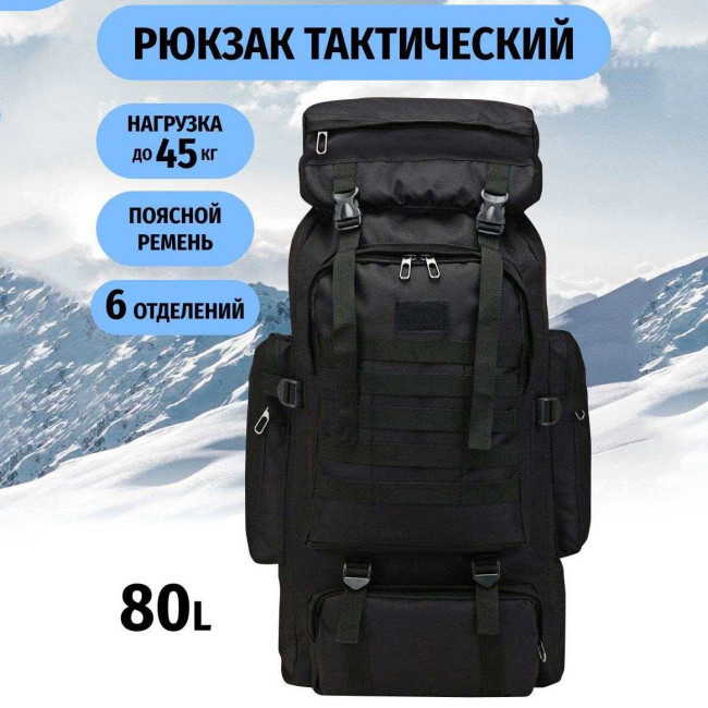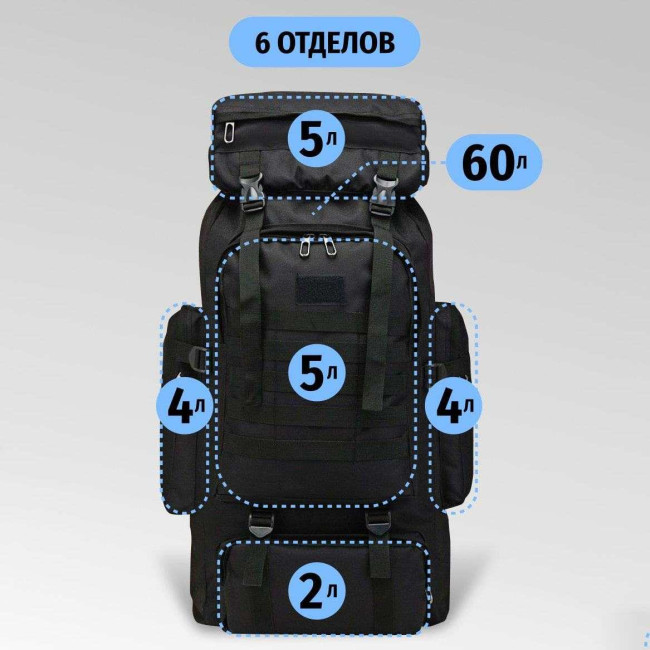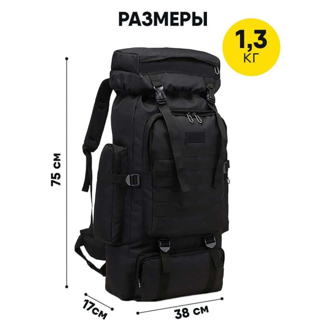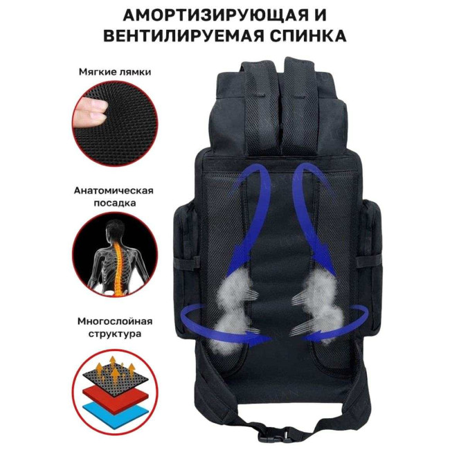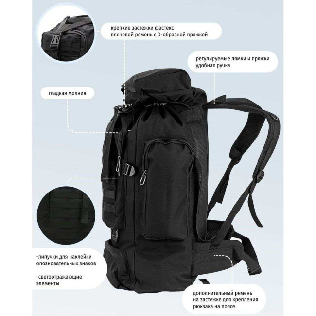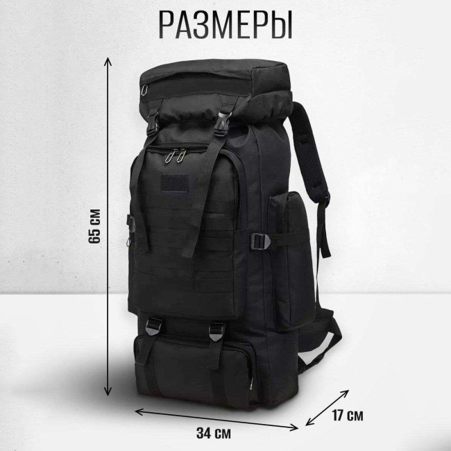 Рюкзак тактичний чорний 4в1 70 л Водонепроникний туристичний рюкзак. Колір: чорний