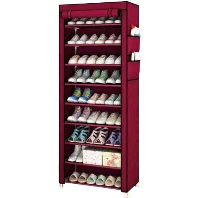 Ця тканинна шафа-органайзер призначена для ефективного зберігання взуття в передпокої або вхідній зоні, захищаючи приміщення від вуличного бруду завдяки тканинним дверцятам із блискавкою. Окрім цього, модель успішно використовується в спальні та гардеробній для розміщення одягу, рушників, постільної білизни та дрібних аксесуарів. Завдяки роздільній конструкції та регульованим тканинним полицям шафа адаптується під індивідуальні потреби користувача. Легкість складання та компактність роблять її зручною для переїзду та зміни обстановки.