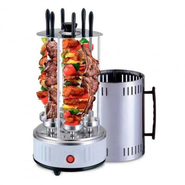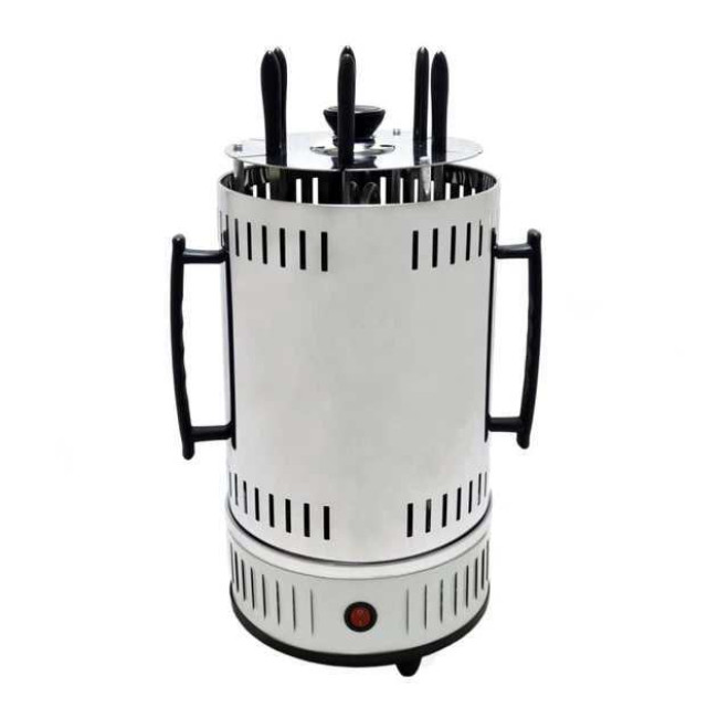 Модель електрошашличниці BBQ від ТМ Domotec відрізняється циліндричною формою, у верхній частині якої розміщується жарова камера, з нижньою – привід шампурів. Завдяки шести шампура, що обертаються, з чашами для стікання жиру і закритого кожуха забезпечується рівномірне прожарювання з усіх боків.