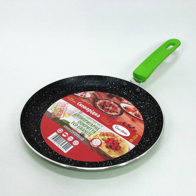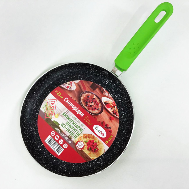 Сковорідка для млинців 23 см Con Brio СВ-2324 Eco Granite, сковорода з індукційним дном. Колір: зелений