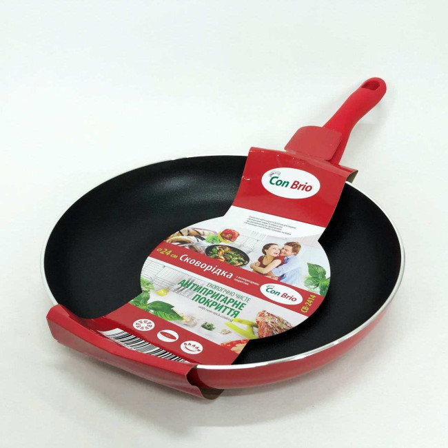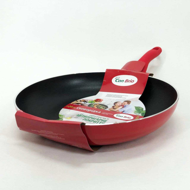 Сковорода антипригарна Con Brio 24 см СВ-2414, сковорода для смаження якісна сковорода. Колір: червоний
