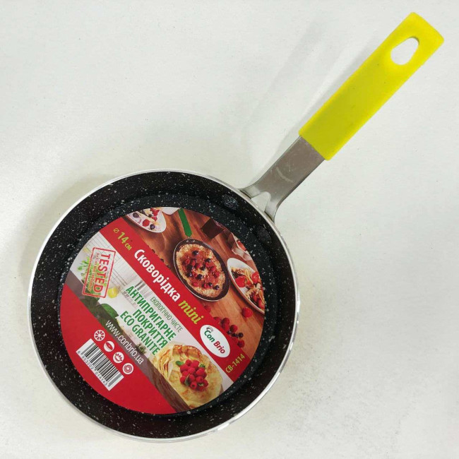 Сковорода Con Brio CB-1414, 14см, Міні, Eco Granite, Якісна сковорода. Колір: жовтий