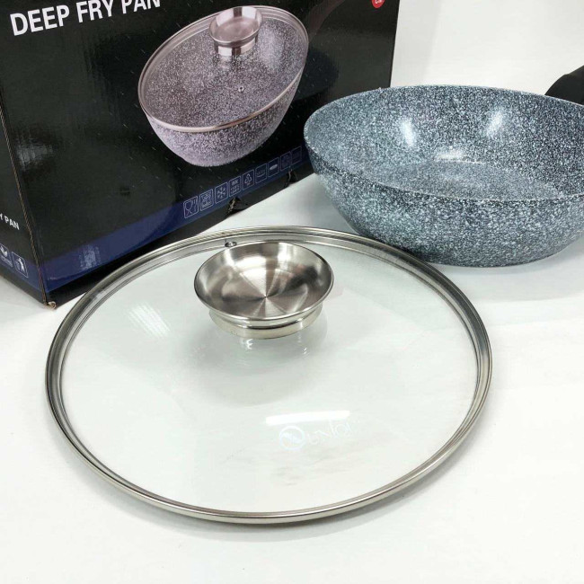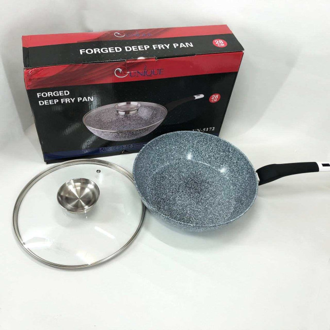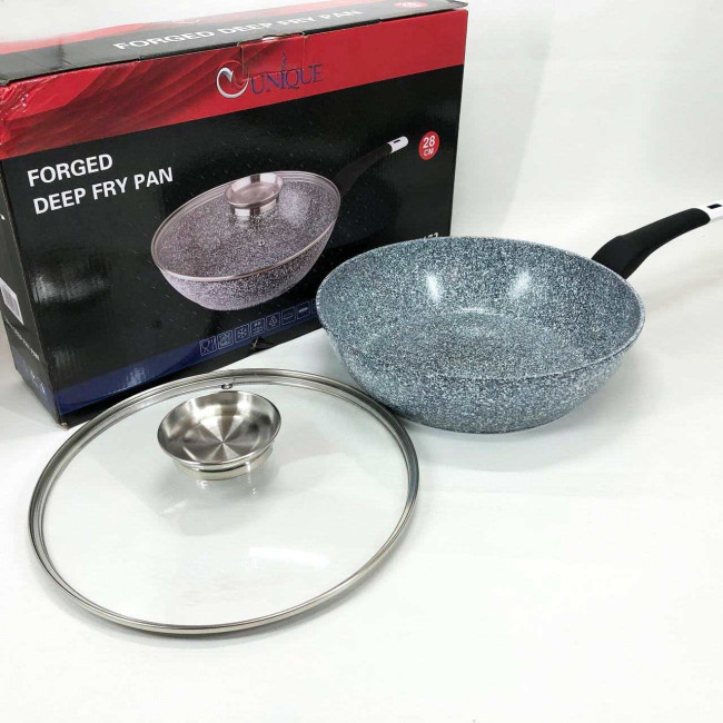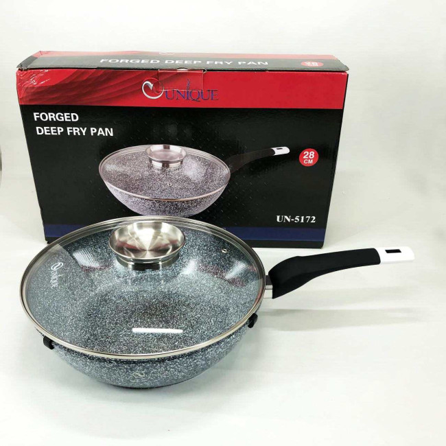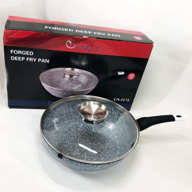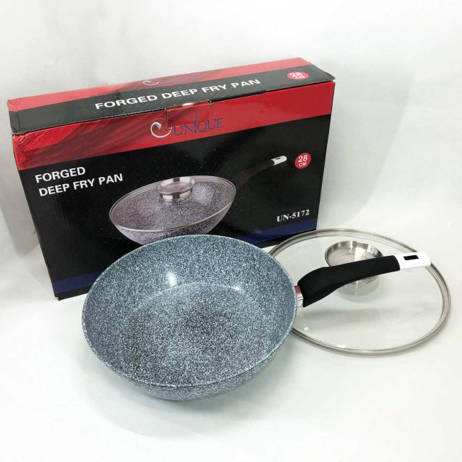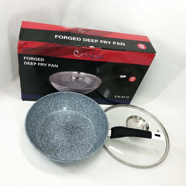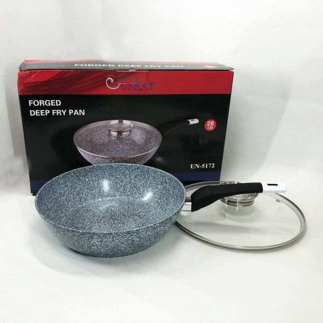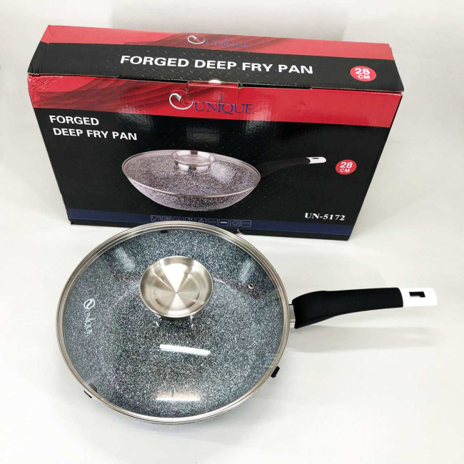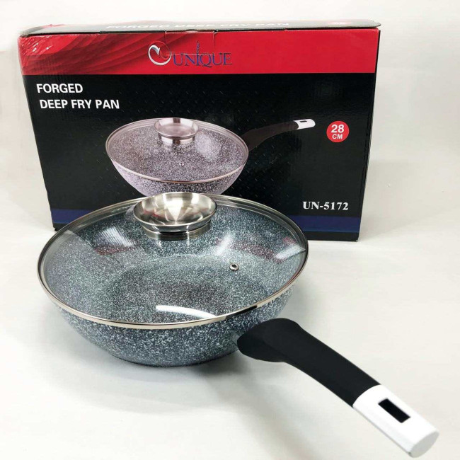 Сковорода глибока UNIQUE UN-5172 28 см з кришкою, Міцна сковорідка з антипригарним покриттям