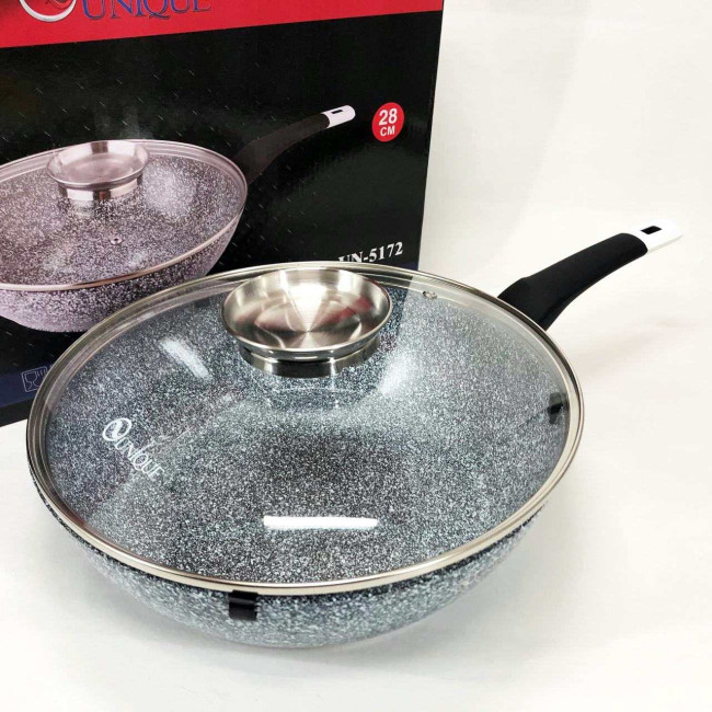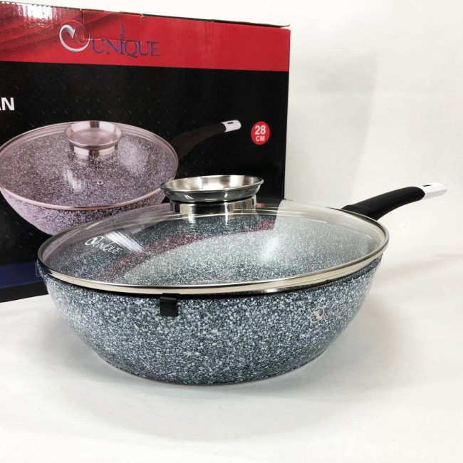 - Сковорода UNIQUE Granite coating має антипригарні властивості, зносостійка та довговічна.