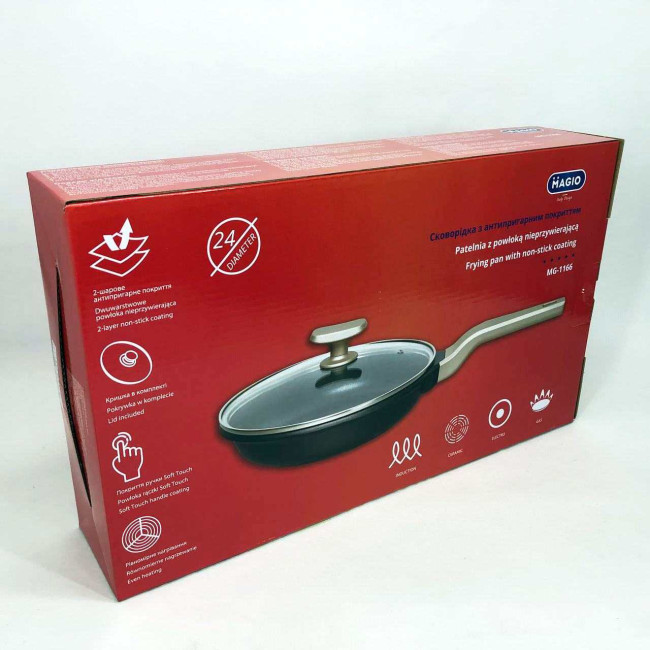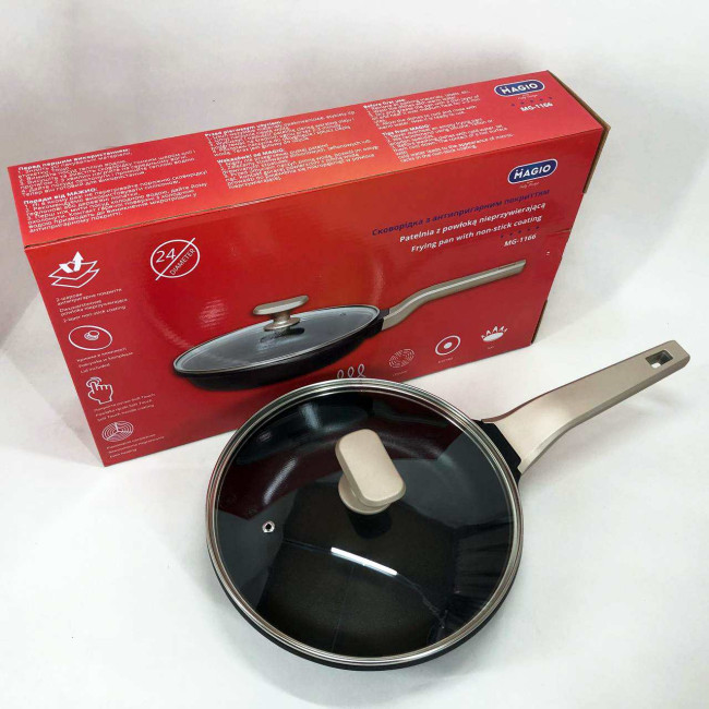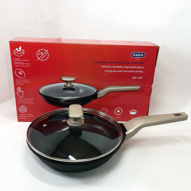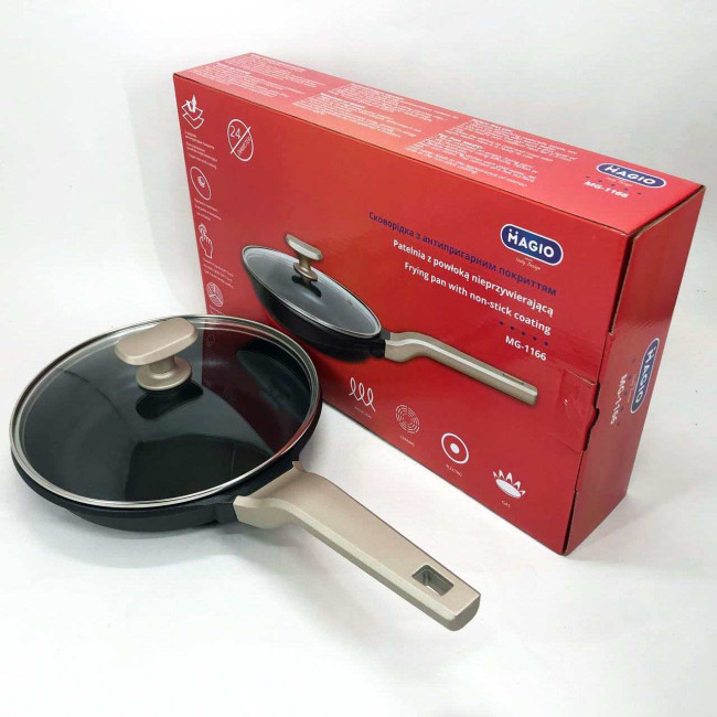 Сковорода Magio MG-1166 з кришкою антипригарна 24 см, сковорода для смаження, якісна сковорода