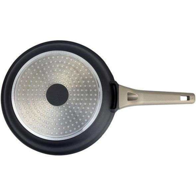 - Оптимальні розміри і вага сковороди сприяють легкому керуванню під час готування, зберігаючи простір на кухонній поверхні.