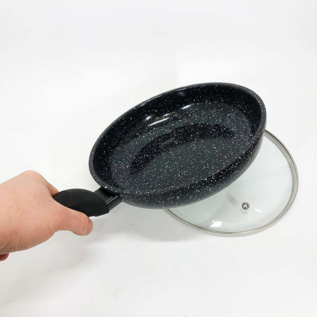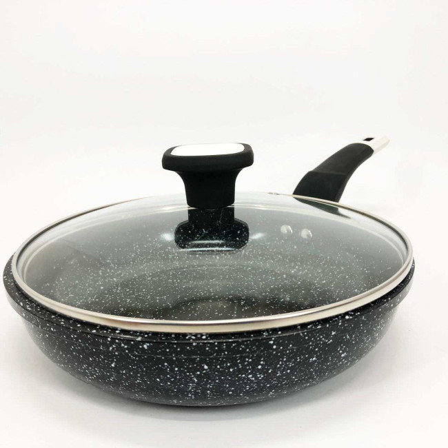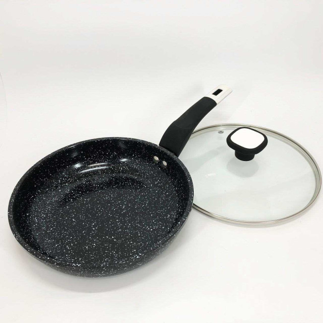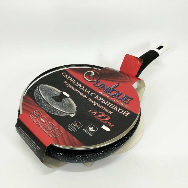 Сковорода UNIQUE UN-5114 22 см із кришкою граніт світлий багатошарове покриття
