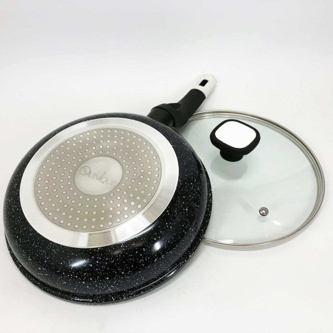 Сковорода UNIQUE UN-5114має високоякісне гранітне антипригарне покриття. захист антипригарного покриття, завдяки чому сковорода зносостійка та довговічна Нова система пористого антипригарного покриття дозволяє просмажувати продукти до хрусткої скоринки.