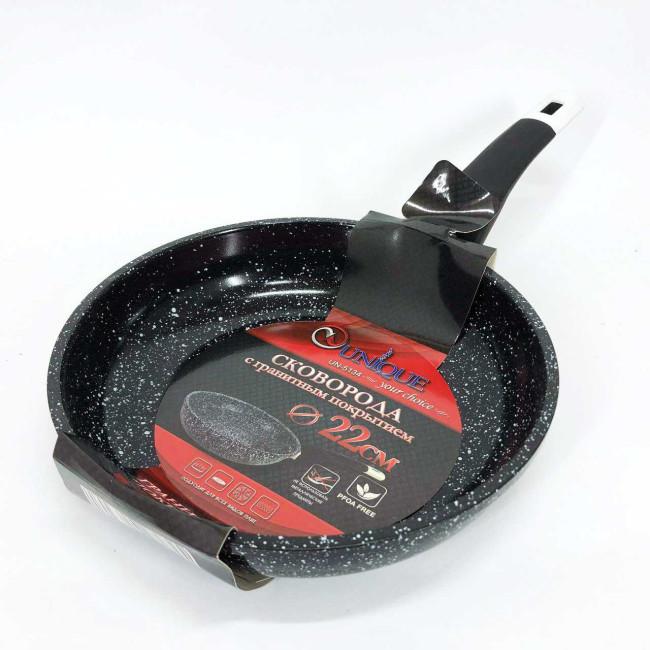 Сковорода UNIQUE UN-5134 22 см без кришки, стійка до подряпин та сколів сковорода, з антипригарним покриттям