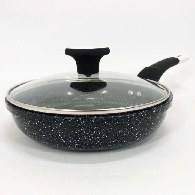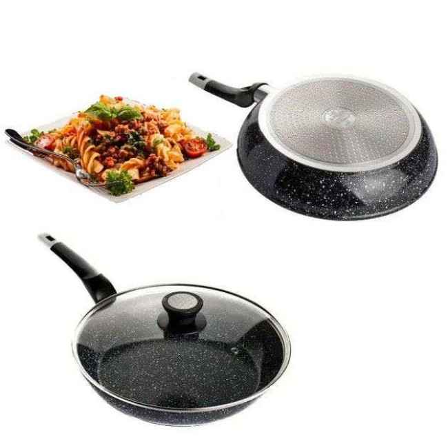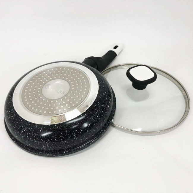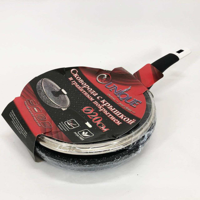 Сковорода зі скляною кришкою UNIQUE & Granite coating з антипригарними властивостями, вона зносостійка і довговічна. Нова система пористого антипригарного покриття дозволяє просмажувати продукти до хрусткої скоринки. Стильна і зручна і довговічна сковорода UNIQUE з гранітним покриттям знайде своє місце на будь-якій кухні. Перед першим використанням вимийте посуд миючим засобом, промийте, просушіть. Забороняється використовувати металеві губки, а також засоби, що містять абразивні добавки та хлор. Для миття посуду можна використовувати посудомийну машину та ручне миття. Різкий перепад температур може призвести до псування покриття, тому не ставте на гарячу конфорку посуд із холодильника. Готувати їжу слід за невеликого або середнього нагрівання. Не залишайте посуд на тривалий час на гарячій конфорці.
