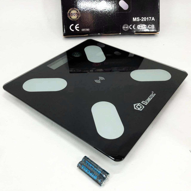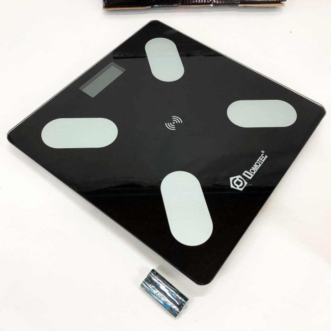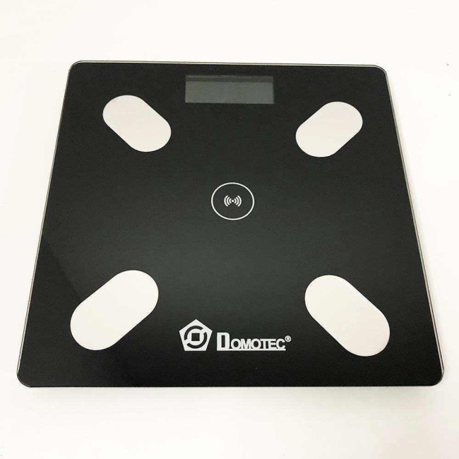 Ваги ваги Domotec виготовлені з міцного скла квадратної форми. Завдяки компактним розмірам, ваги підлоги зручно зберігати – не займуть багато місця. Розраховані на вимір ваги в діапазоні до 180 кг. Мобільний додаток можна встановити відсканувавши QR-код з інструкції.