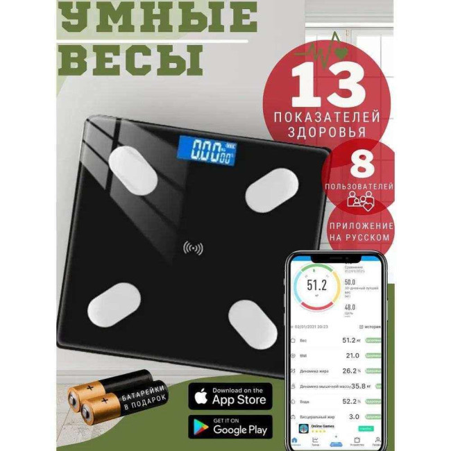 - Підключивши телефон до ваги за допомогою програми, Ви зможете визначити вміст води, жирової, м’язової тканини, ІМТ та інше;