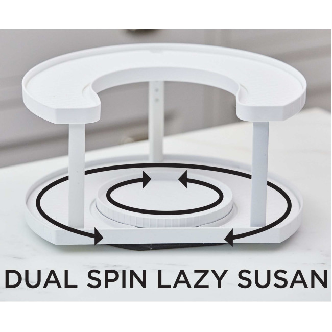 Спецівниця Spice Spinner Two-Tiered Spice Organizer аксесуар допоможе організувати простір усередині шафи та покращити доступ до спецій та консервації. Полиця-органайзер допоможе організовано зберігати спеції, харчові добавки тощо.