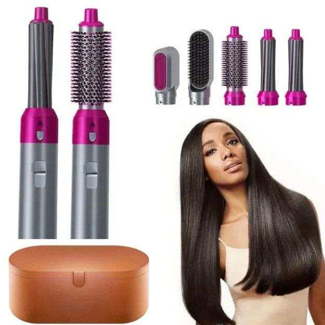 - П’ять в одному: Насолоджуйтесь п’ятьма різними функціями стайлера в одному комплекті: сушіння, завивка, випрямлення, об’єм та формування текстури. Це все, що потрібно для створення різноманітних укладок без зайвих зусиль.