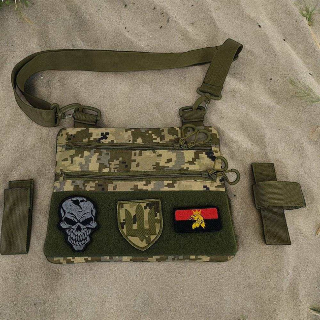 - Патч панель: Наявність патч панелі дозволяє розміщувати ваші патчі та шеврони для персоналізації сумки.