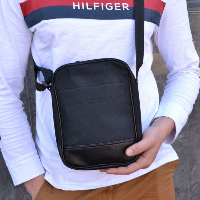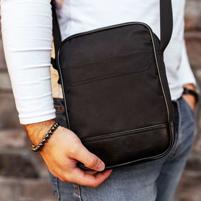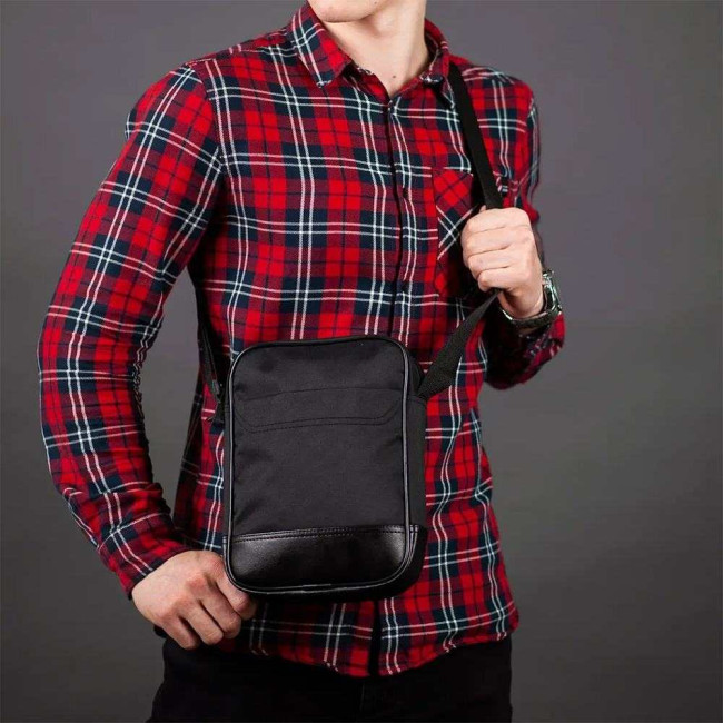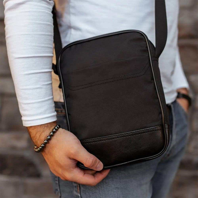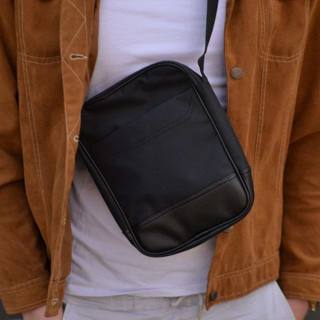 Сумка-месенджер із еко-шкіри + тканини, чоловіча сумка через плече, сумка через плече кежуал чоловіча