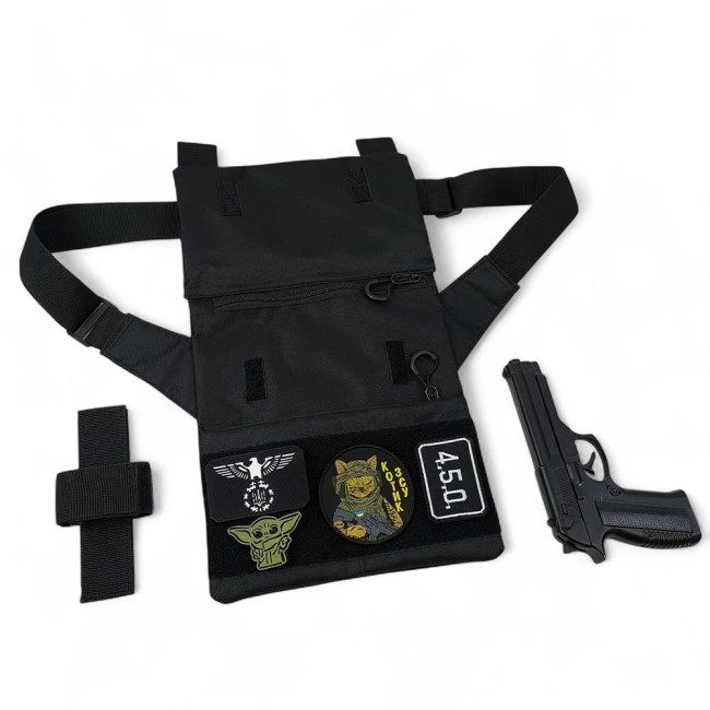 Сумка месенджер З КОБУРОЮ. Тактична сумка з тканини, 3 кишені, патч-панель, Cordura