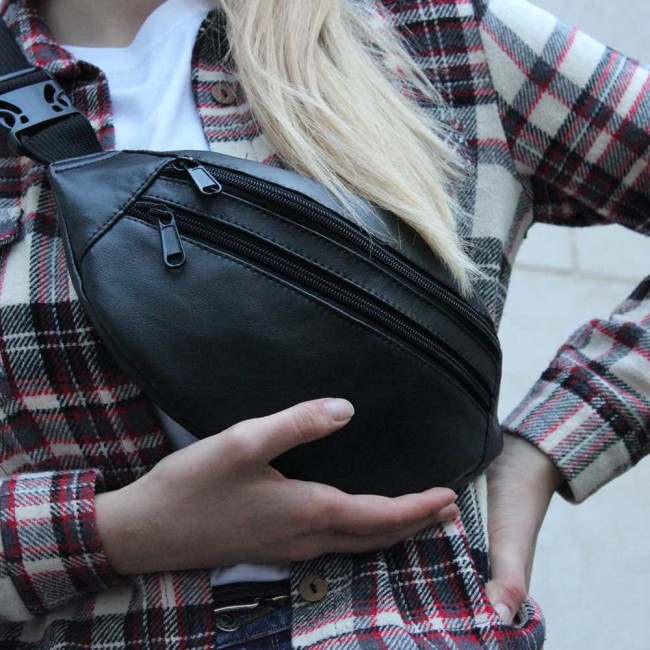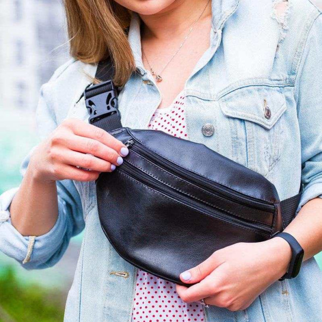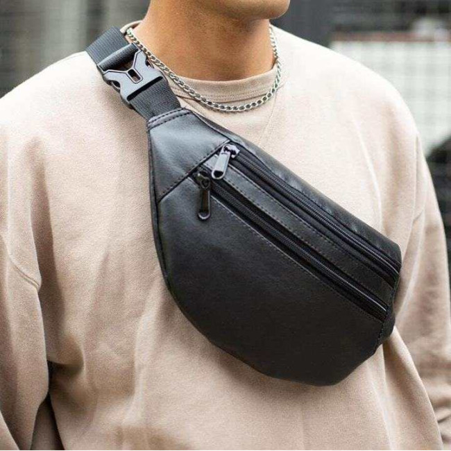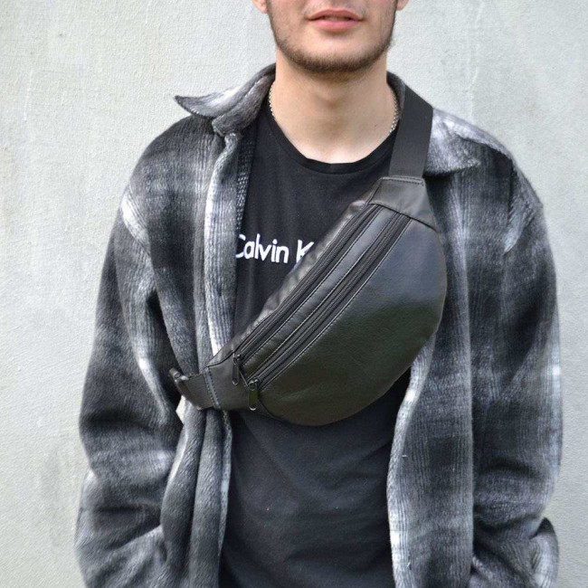 Сумка на пояс з еко-шкіри. Сумка через плече. Бананка чоловіча, жіноча Black
