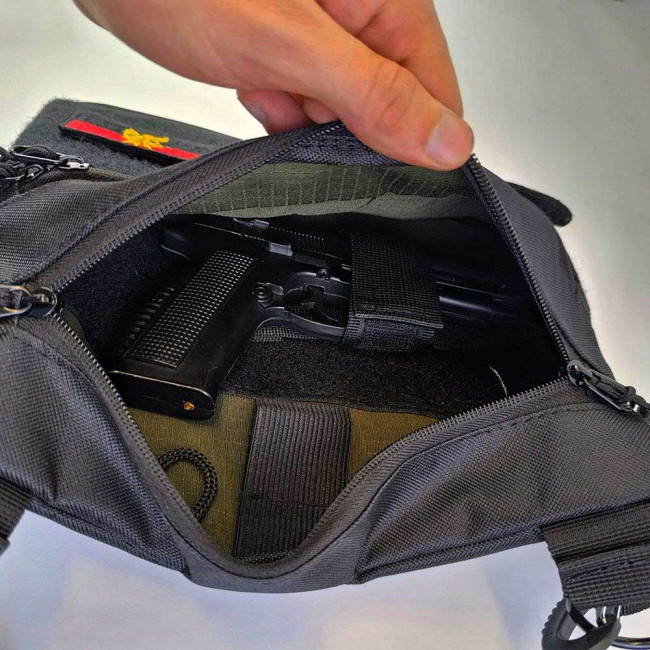 - Зйомна кобура і чохол для магазина: Сумка включає зйомну кобуру, яка надійно фіксує ваш пістолет, та зйомний чохол для магазина, забезпечуючи зручність і безпеку.