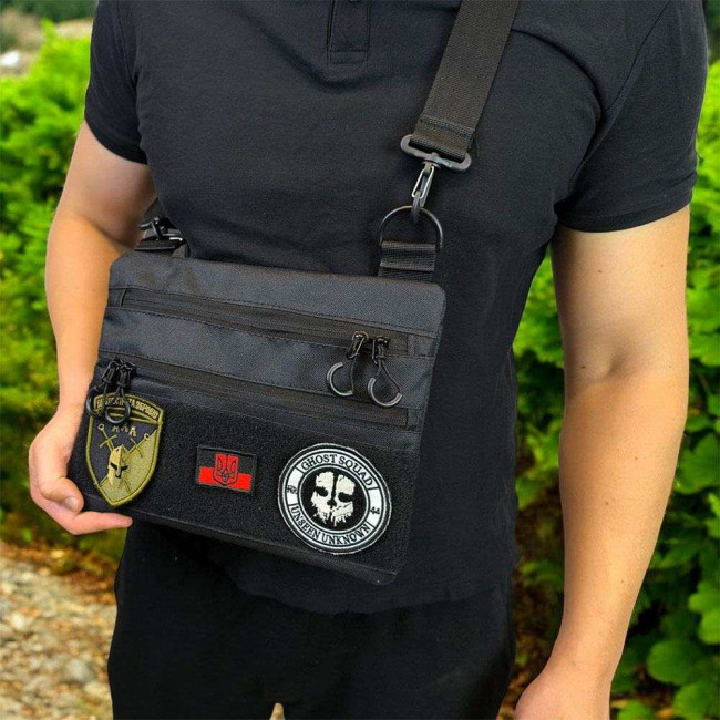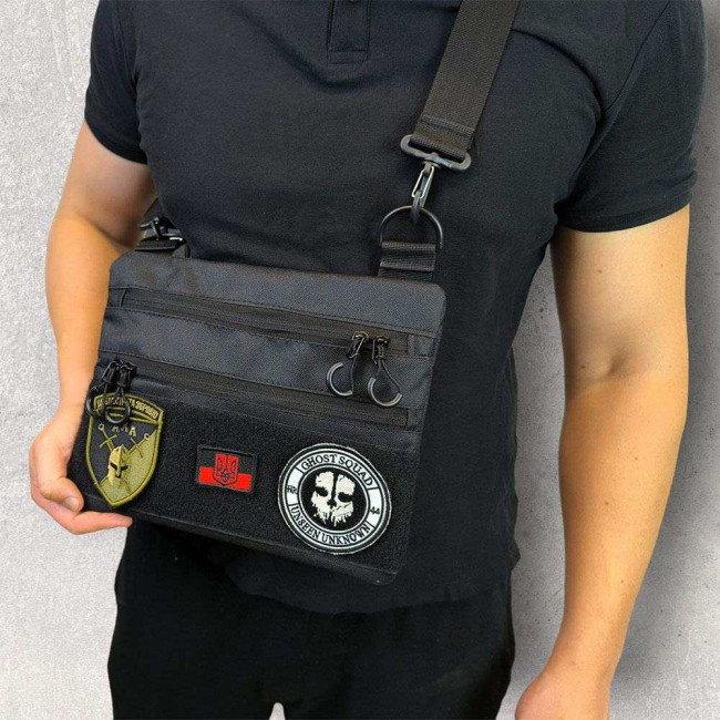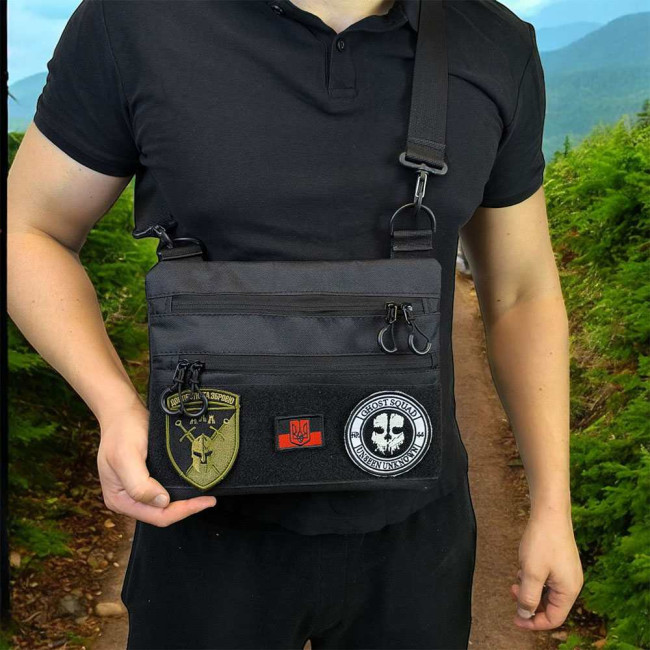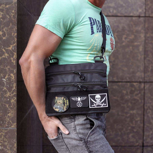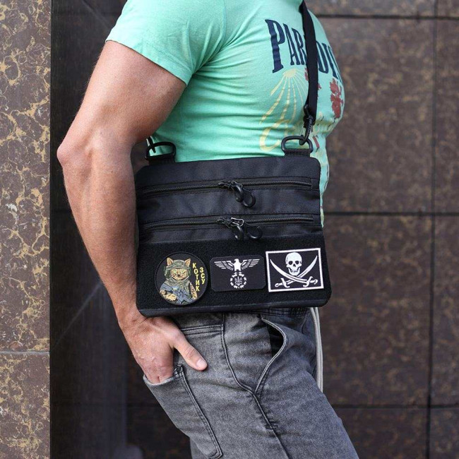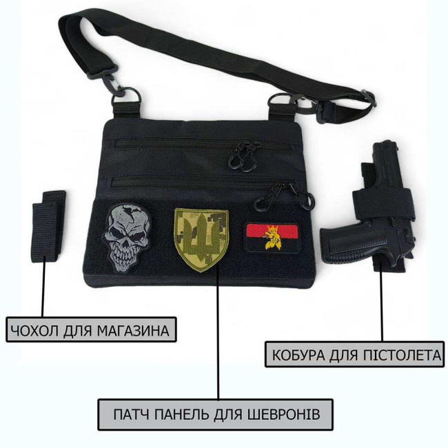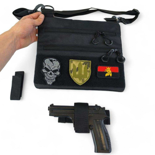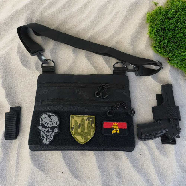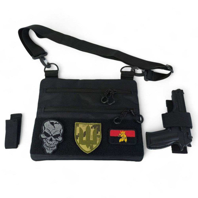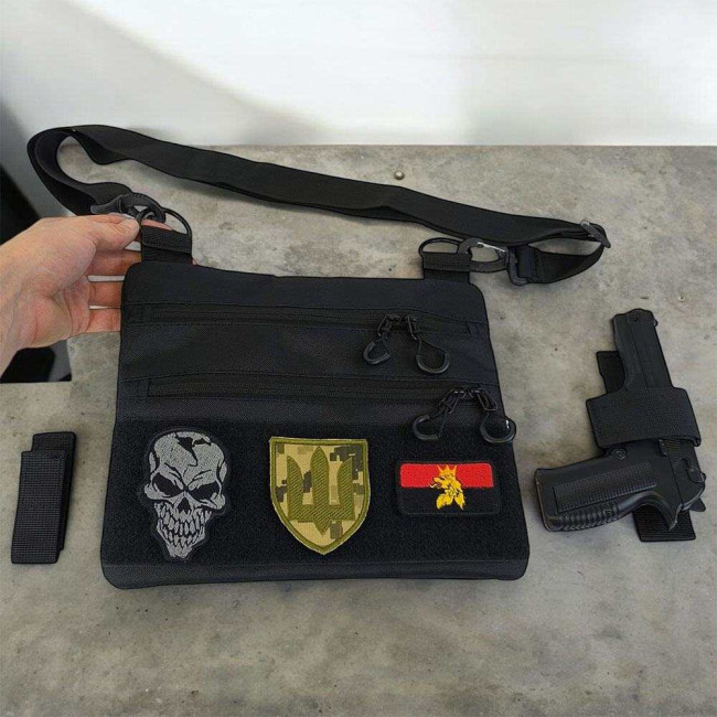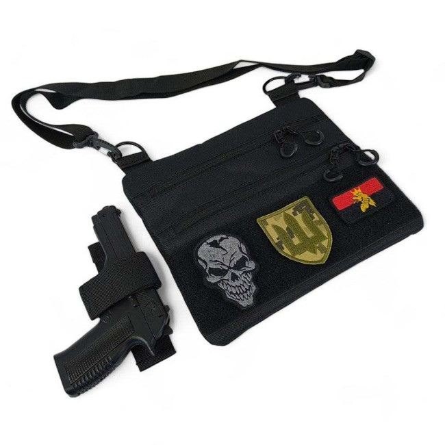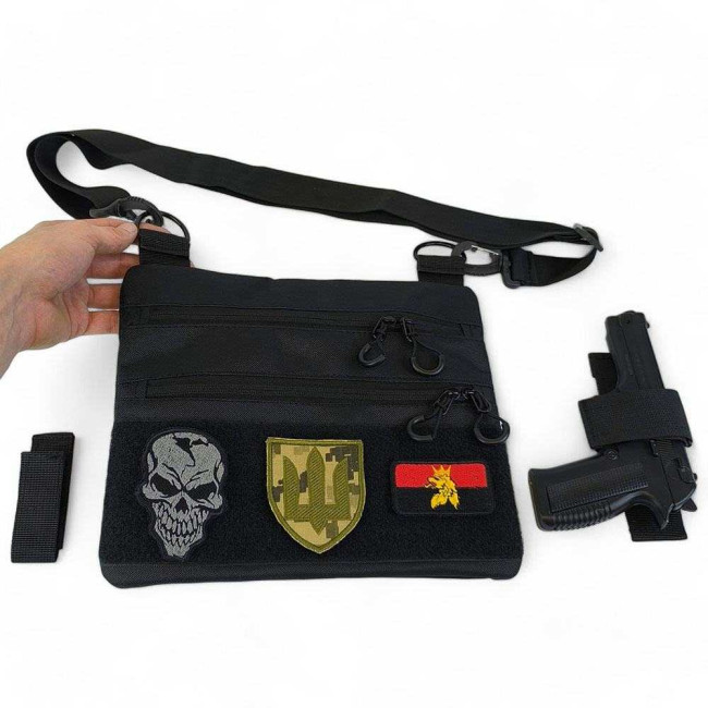Сумка тактична чорна для скритого носіння з кобурою, чоловічий месенджер з кордури